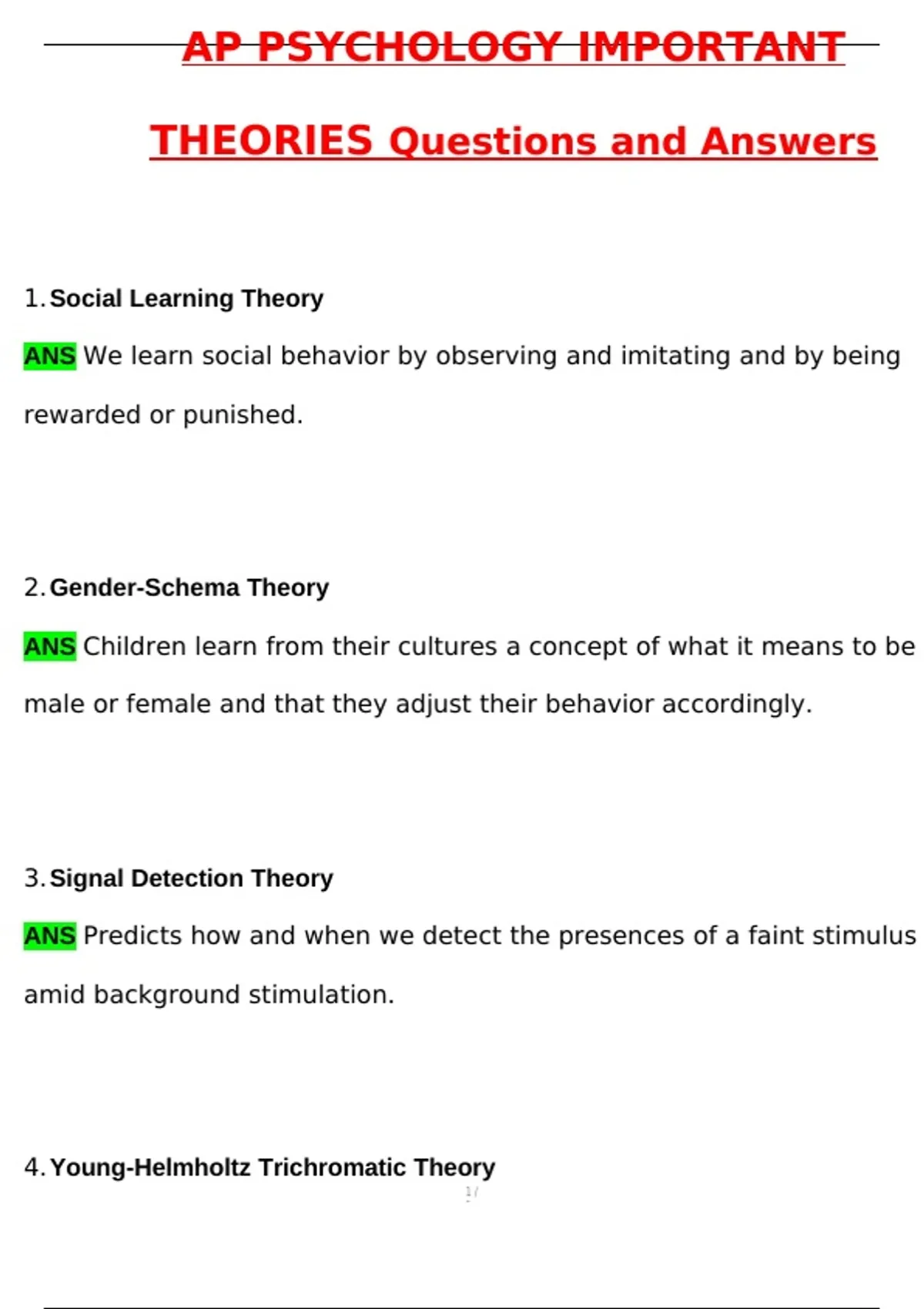THEORIES Questions and Answers