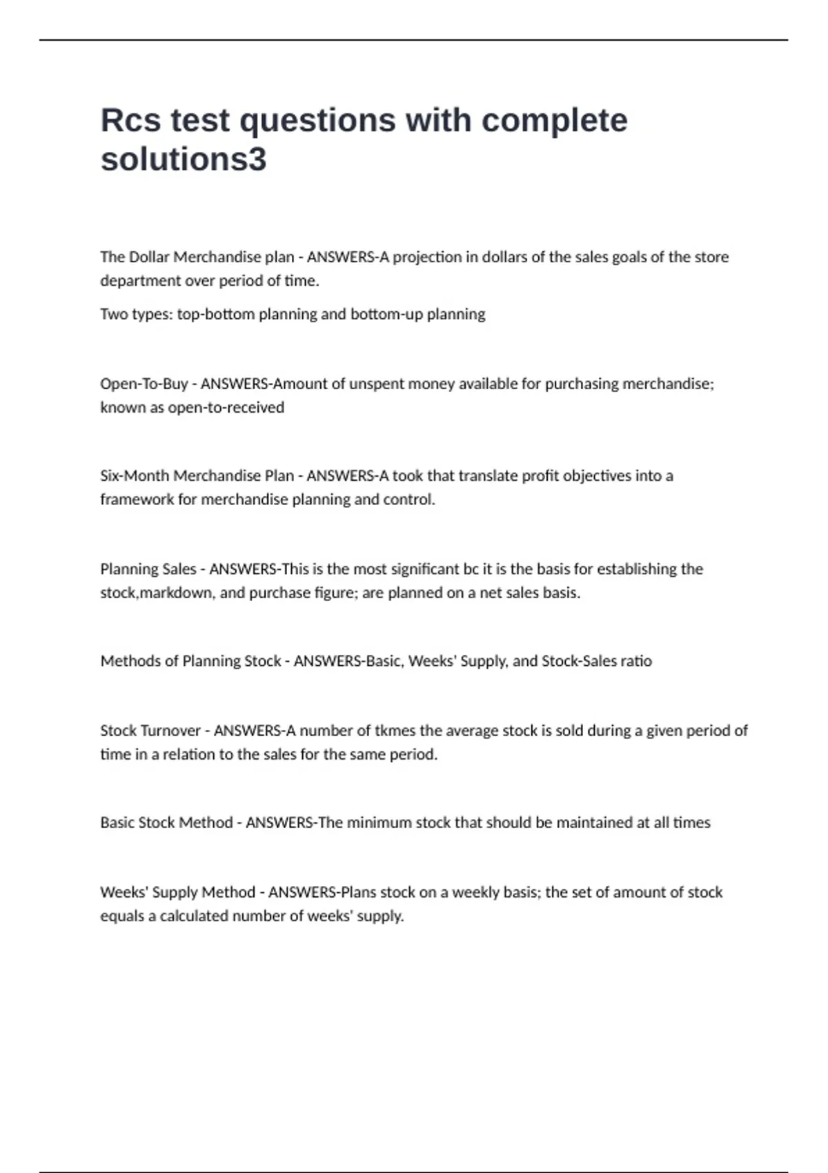The Dollar Merchandise plan - ANSWERS-A projection in dollars of the sales goals of the store