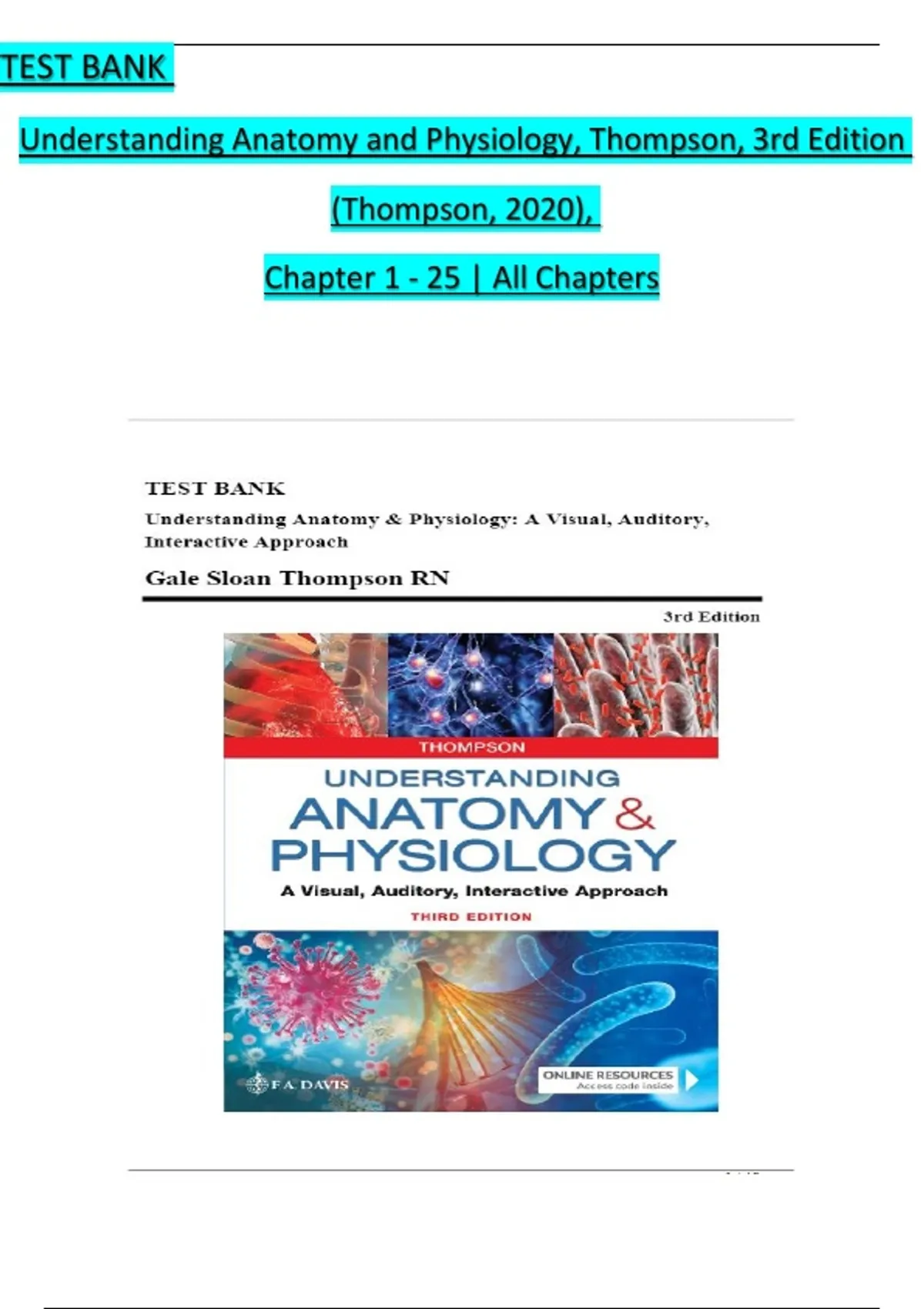 Understanding Anatomy and Physiology, Thompson, 3rd Edition