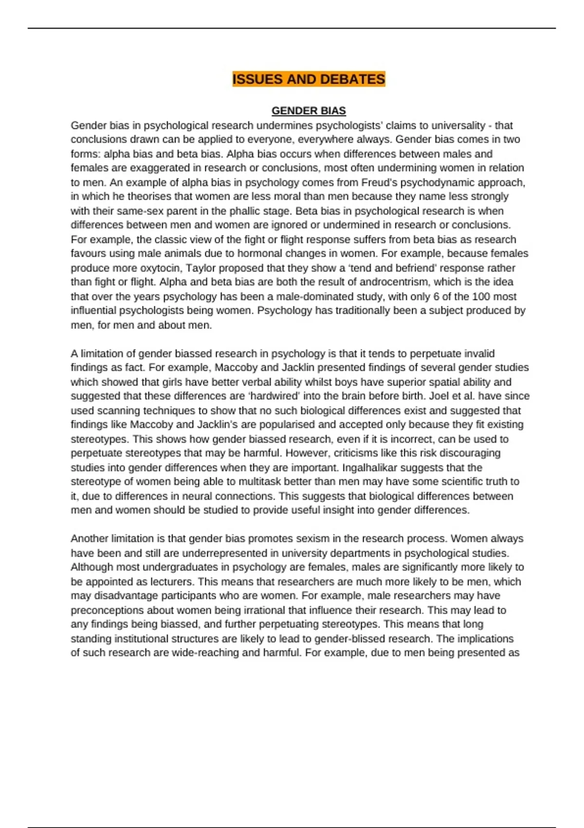 to men. An example of alpha bias in psychology comes from Freud’s psychodynamic approach,