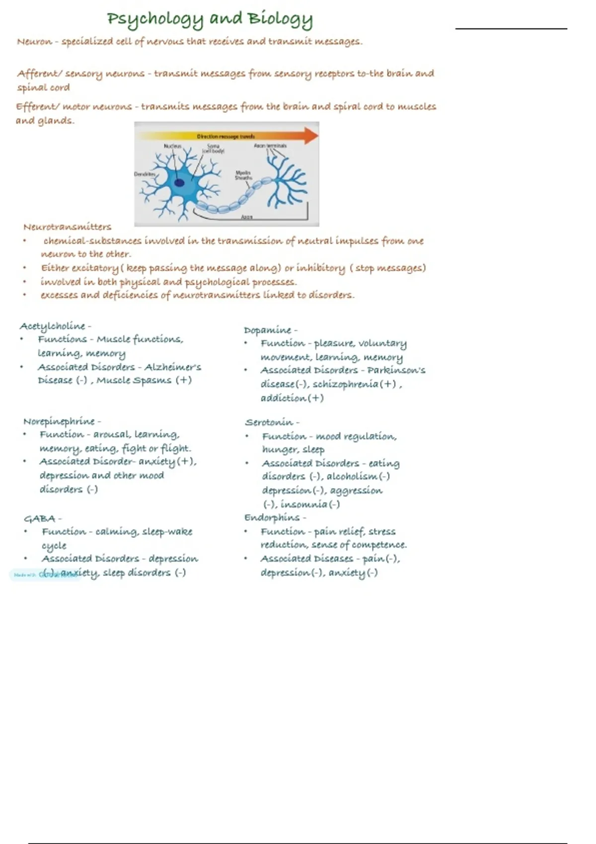 Includes diagrams, definitions, examples, and lists related to psychology and biology.
