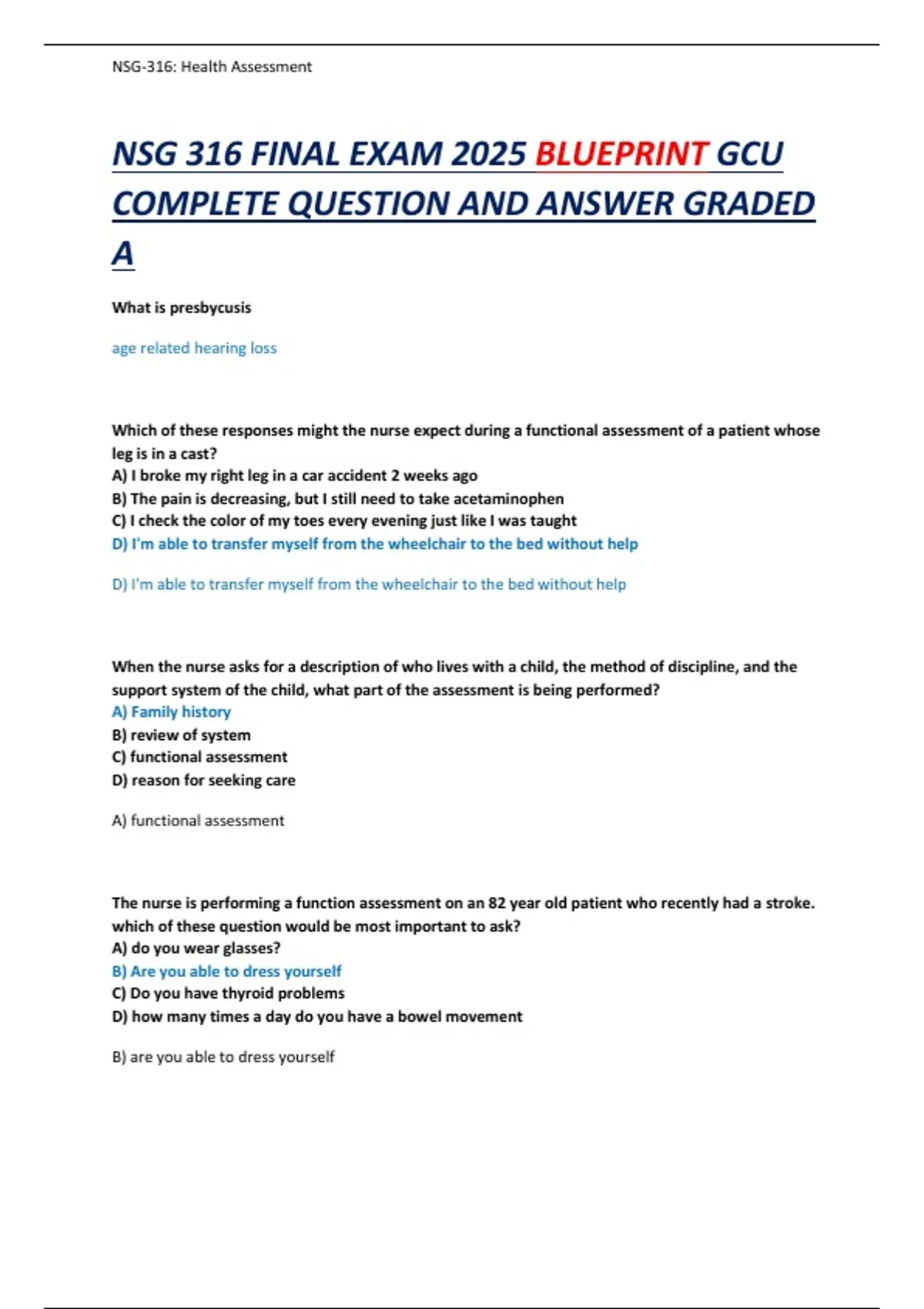 NSG 316 FINAL EXAM 2025 BLUEPRINT GCU