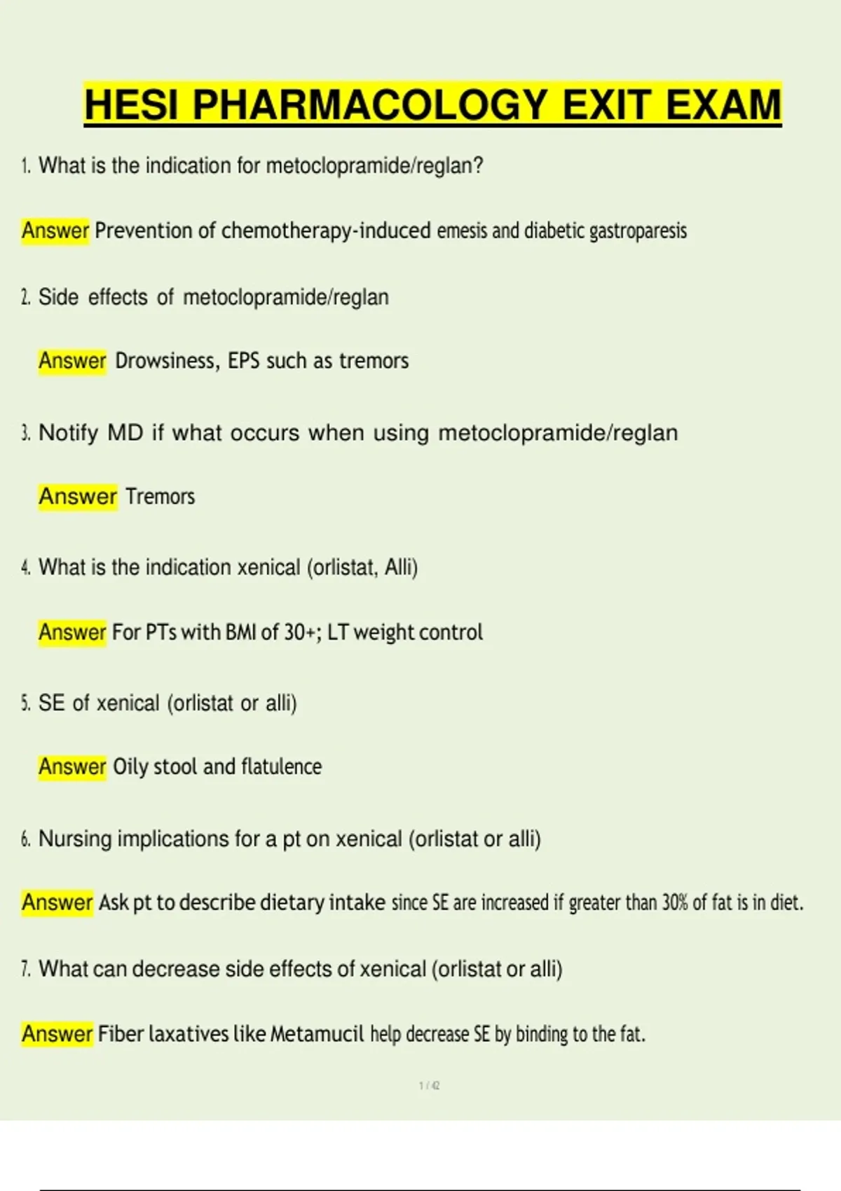 6. Nursing implications for a pt on xenical (orlistat or alli)