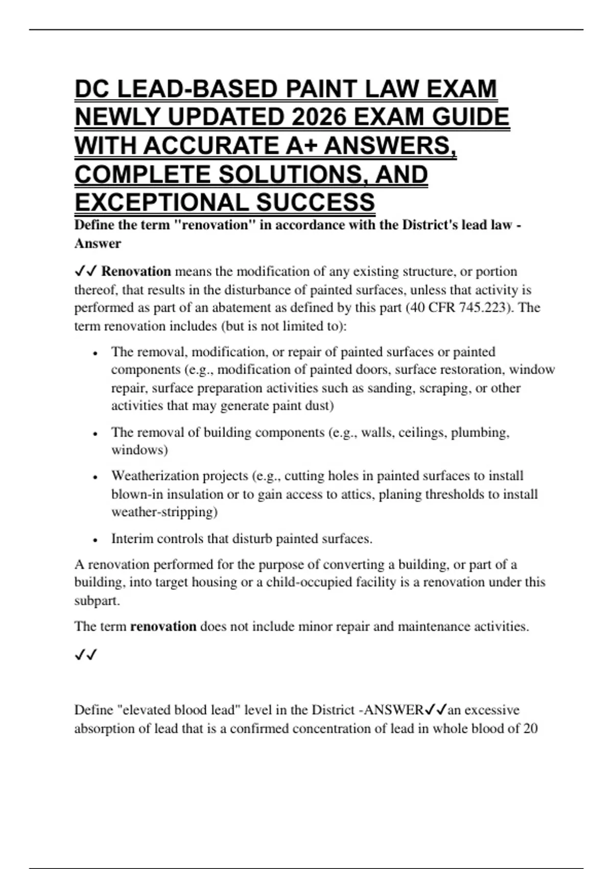 DC LEAD-BASED PAINT LAW EXAM