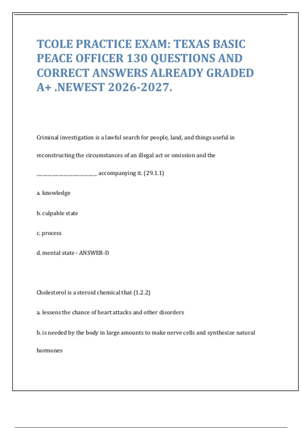 PEACE OFFICER 130 QUESTIONS AND