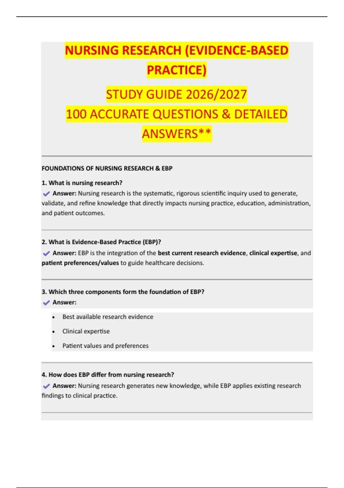 Answer: Nursing research is the systematic, rigorous scientific inquiry used to generate,