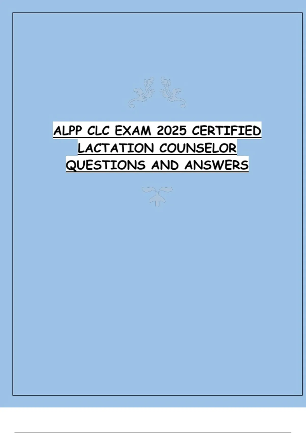 , ALPP CLC EXAM 2025 WITH VERIFIED QUESTIONS