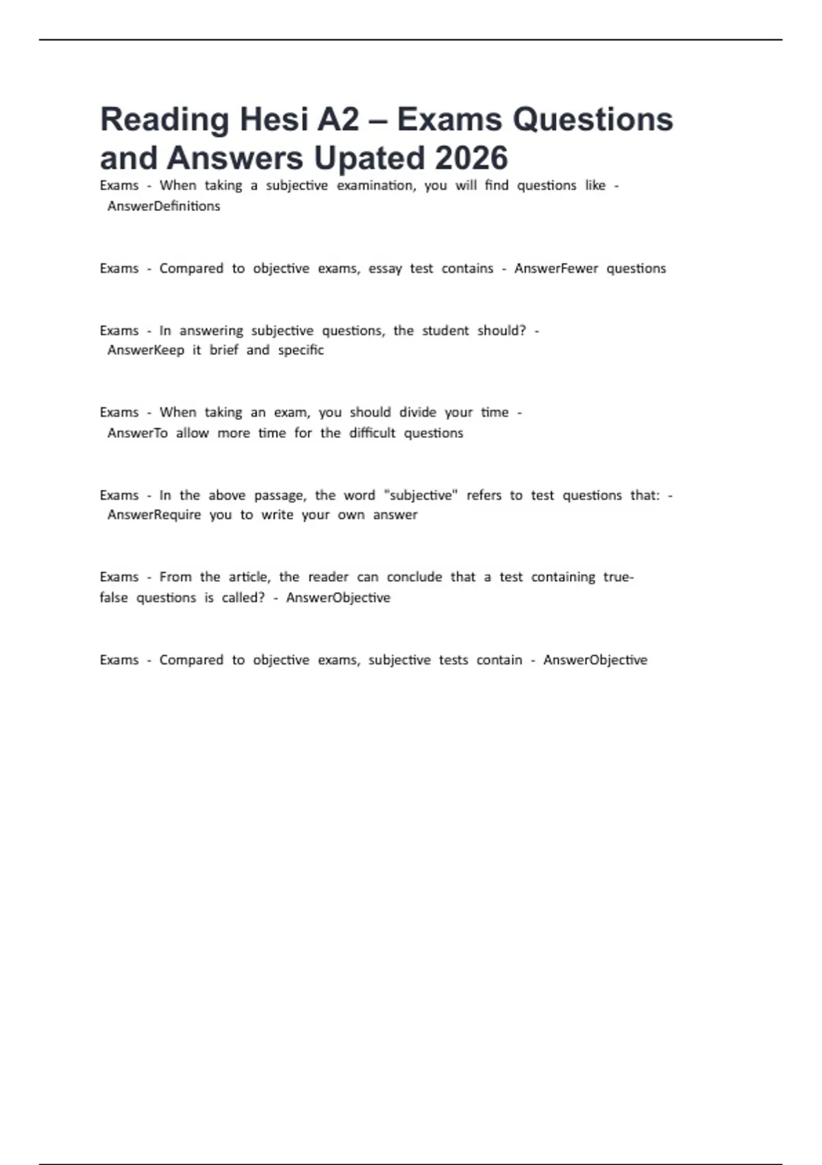 ExamsB-BComparedBtoBobjectiveBexams,BsubjectiveBtestsBcontainB-BAnswerObjective