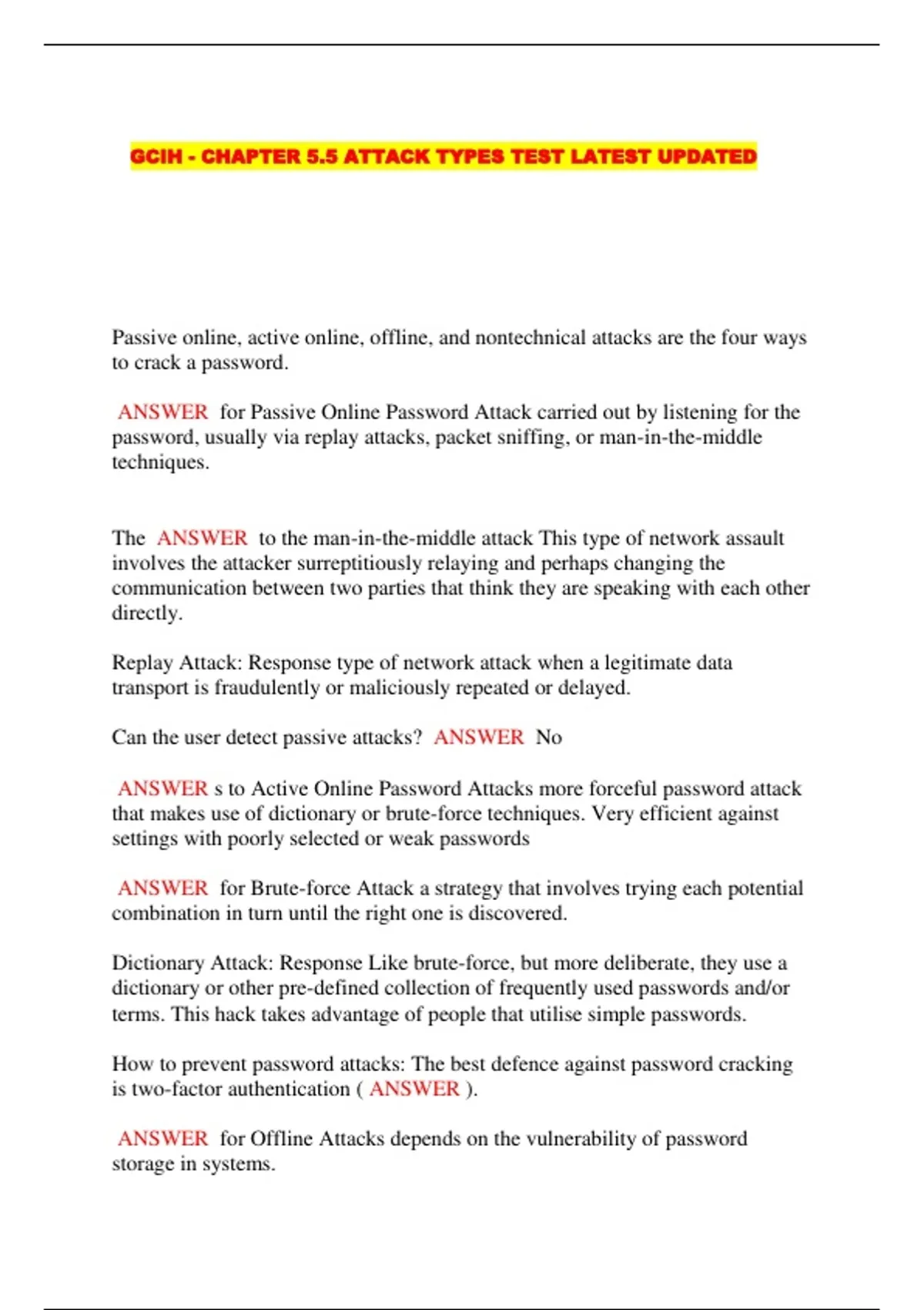 GCIH - CHAPTER 5.5 ATTACK TYPES TEST LATEST UPDATED....
