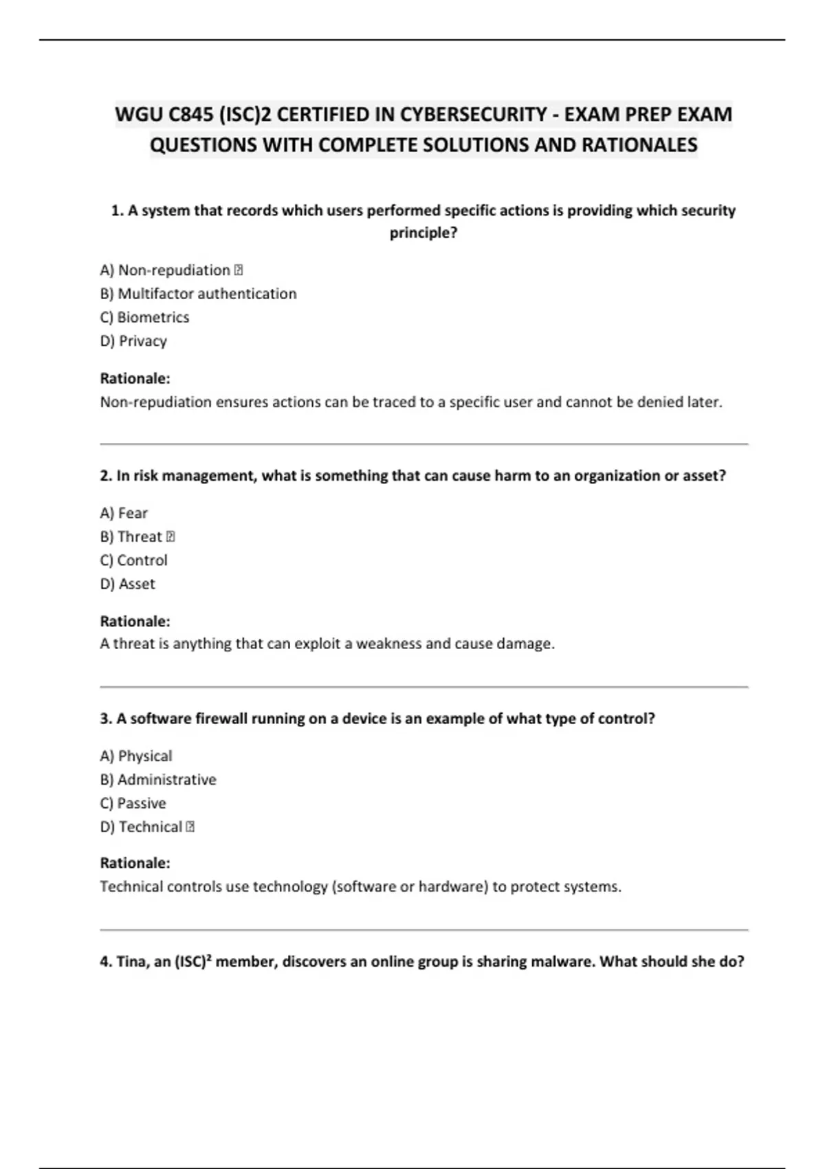 WGU C845 (ISC)2 CERTIFIED IN CYBERSECURITY - EXAM PREP EXAM QUESTIONS WITH COMPLETE SOLUTIONS AND RATIONALES