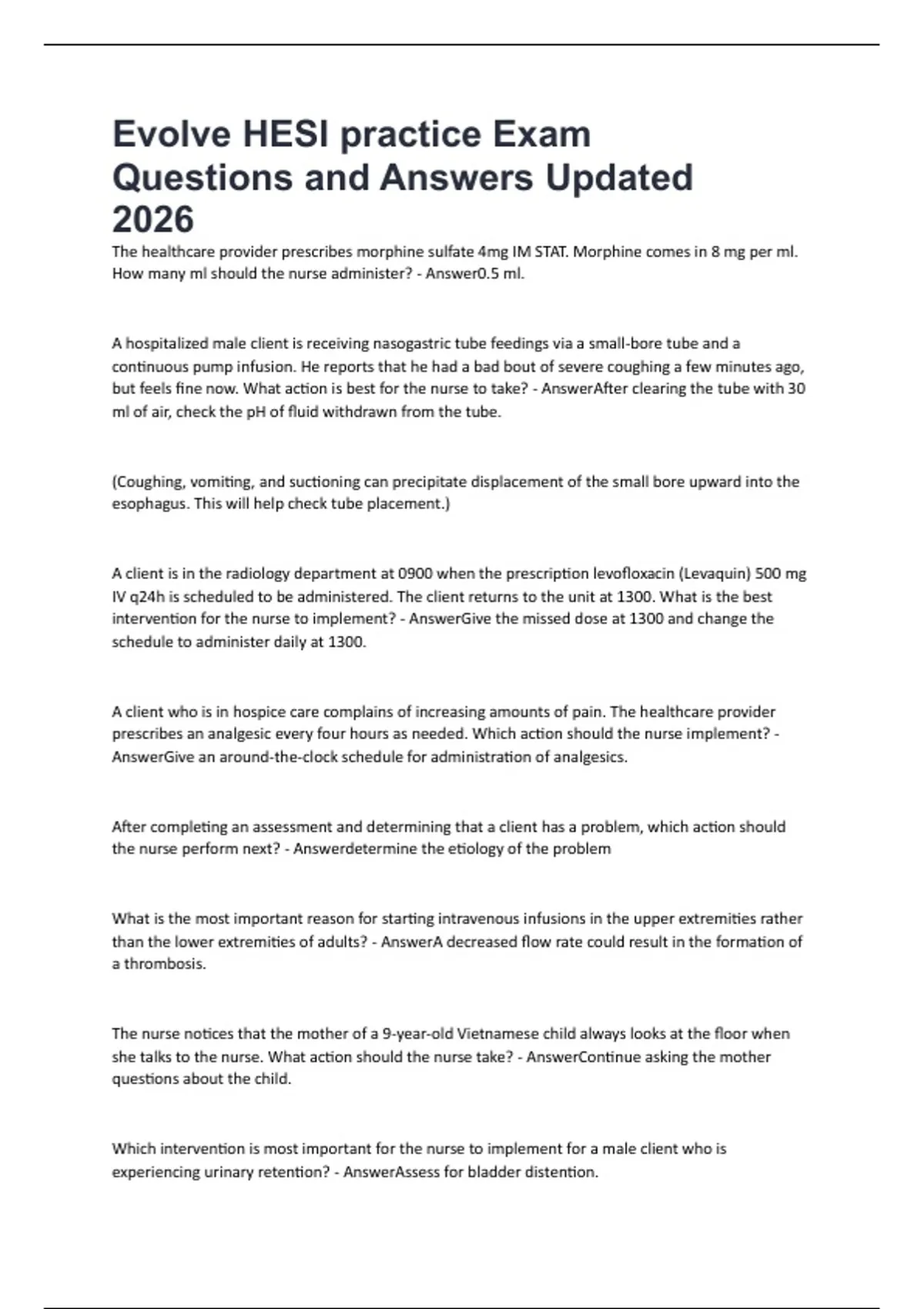 Evolve HESI practice Exam