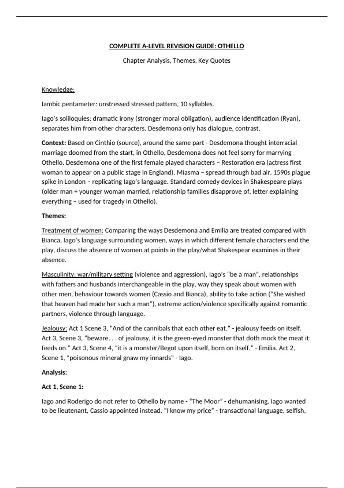 COMPLETE A-LEVEL REVISION GUIDE: OTHELLO