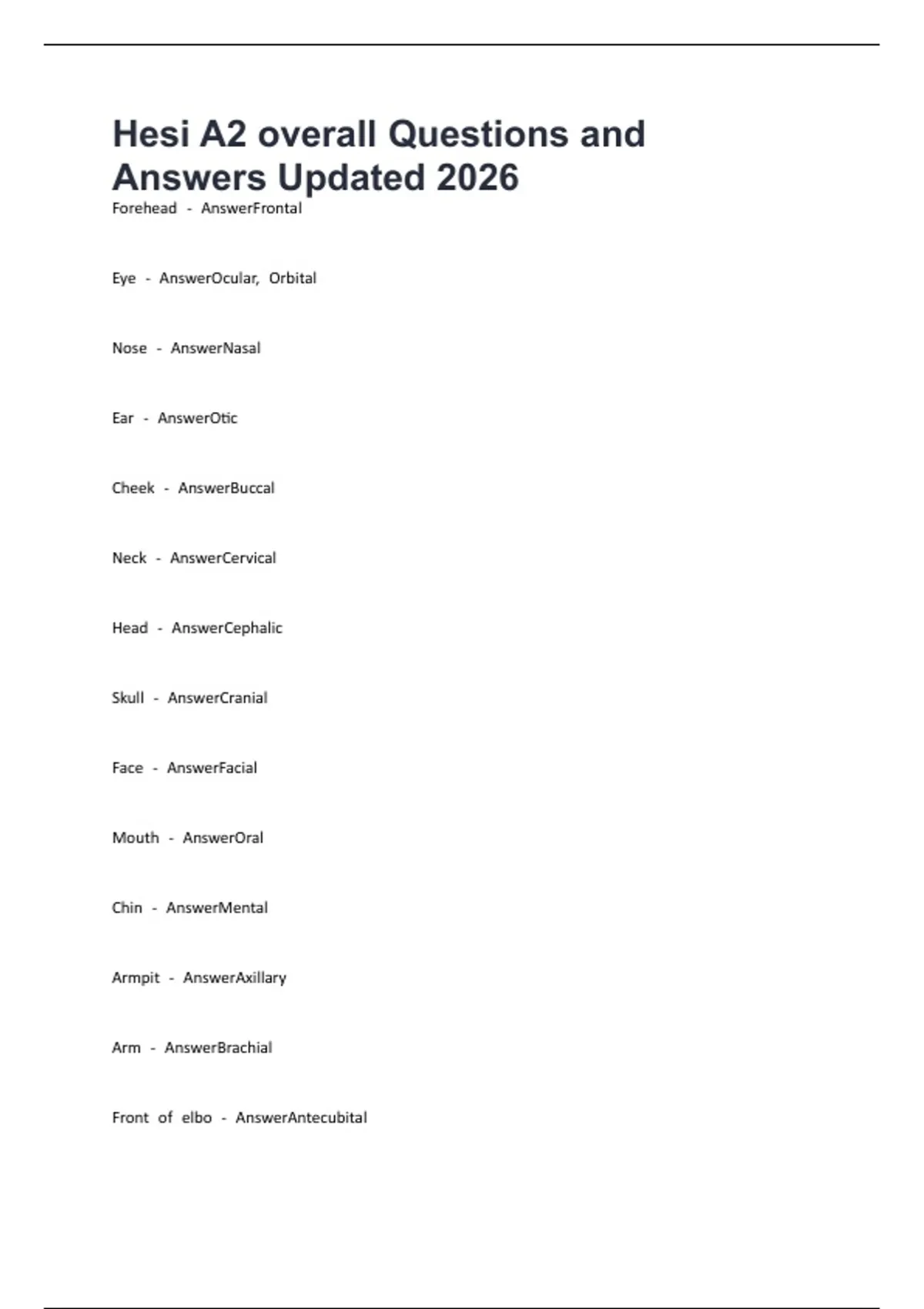 Hesi A2 overall Questions and Answers Updated 2026