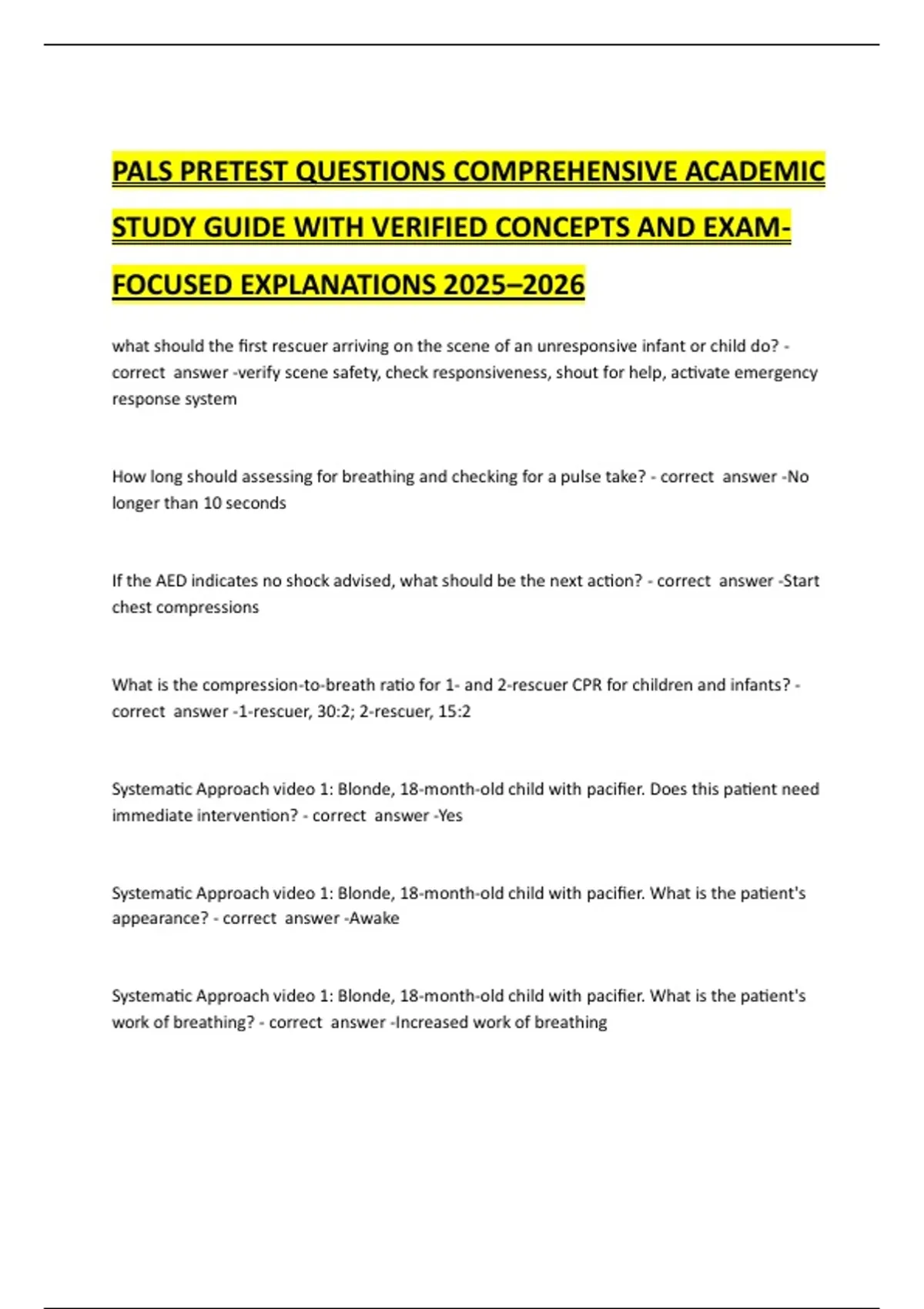 PALS Pretest Questions Comprehensive Academic Study Guide With Verified Concepts and Exam-Focused Explanations 2025–2026