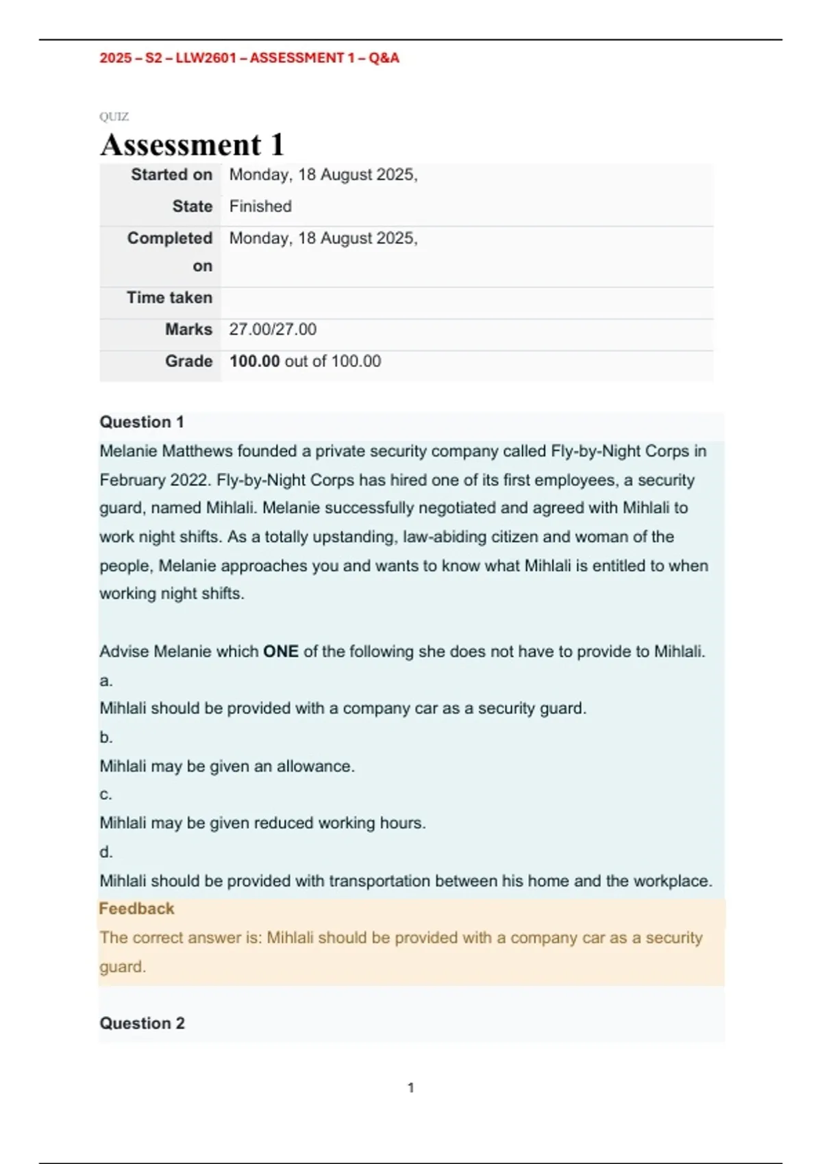 2026 - LLW2601 - ASSESSMENT 1 - QUESTIONS AND ANSWERS - SEMESTER 1