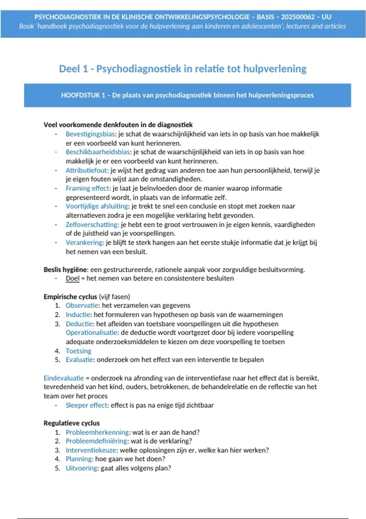 PSYCHODIAGNOSTIEK IN DE KLINISCHE ONTWIKKELINGSPSYCHOLOGIE – BASIS – 202500062 – UU