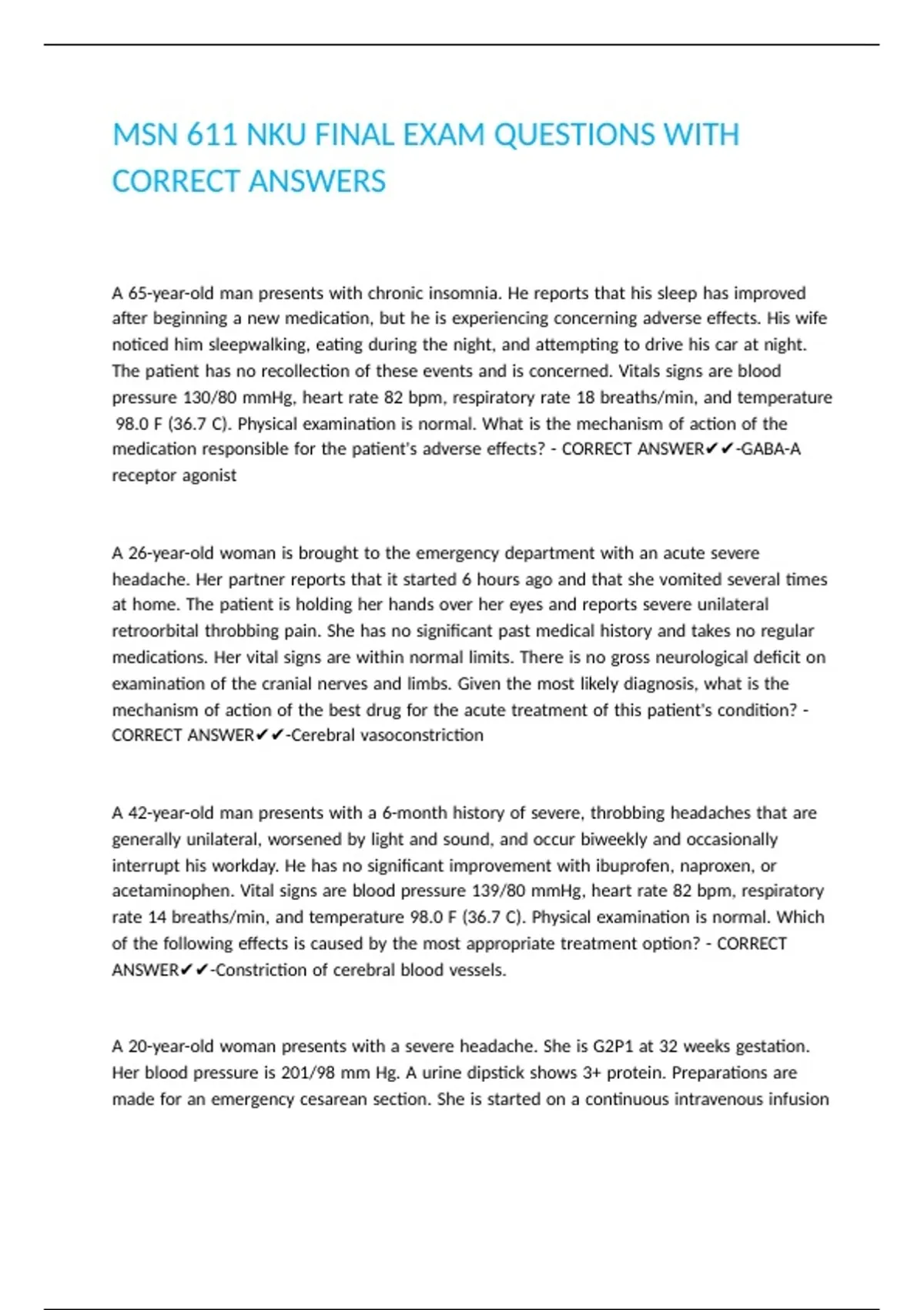 MSN 611 NKU FINAL EXAM QUESTIONS WITH CORRECT ANSWERS