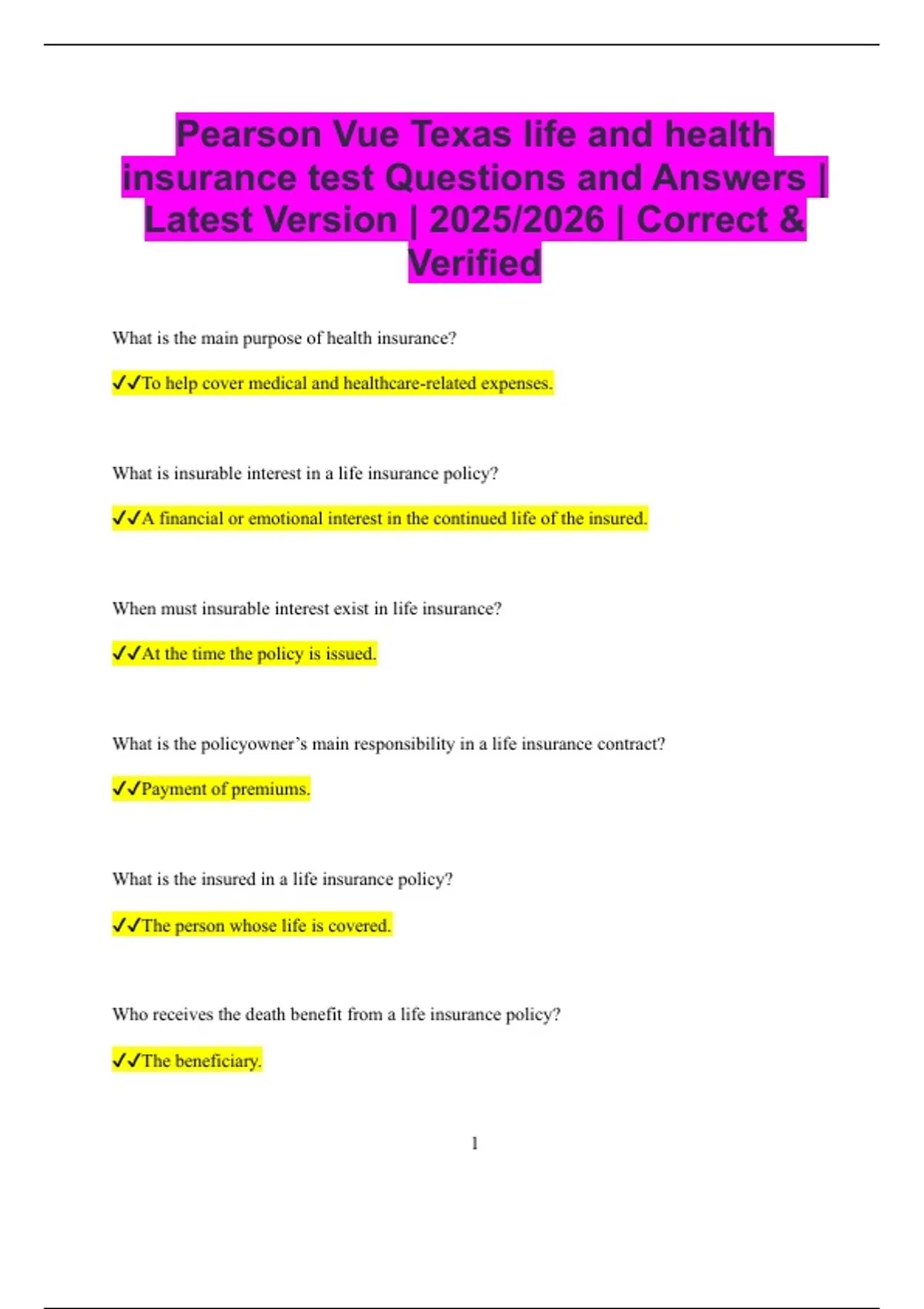 insurance test Questions and Answers |
