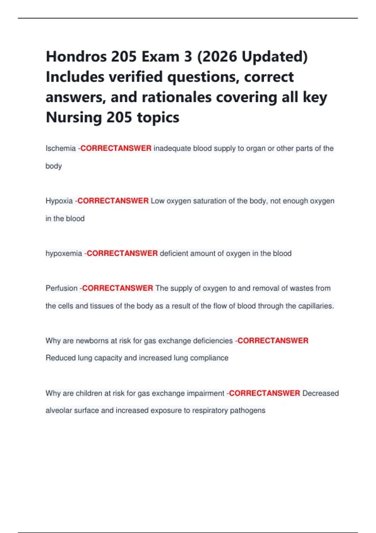 Hondros 205 Exam 3 (2026 Updated)