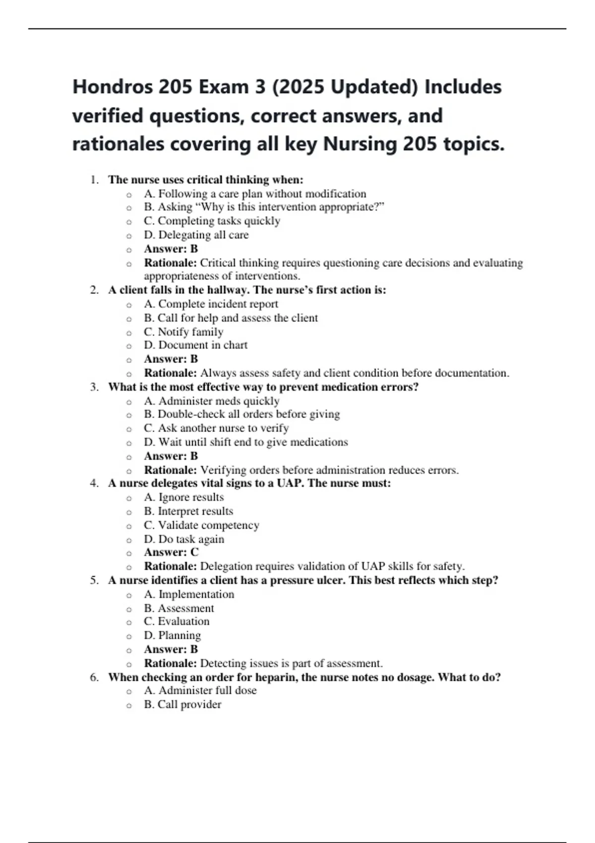 rationales covering all key Nursing 205 topics.