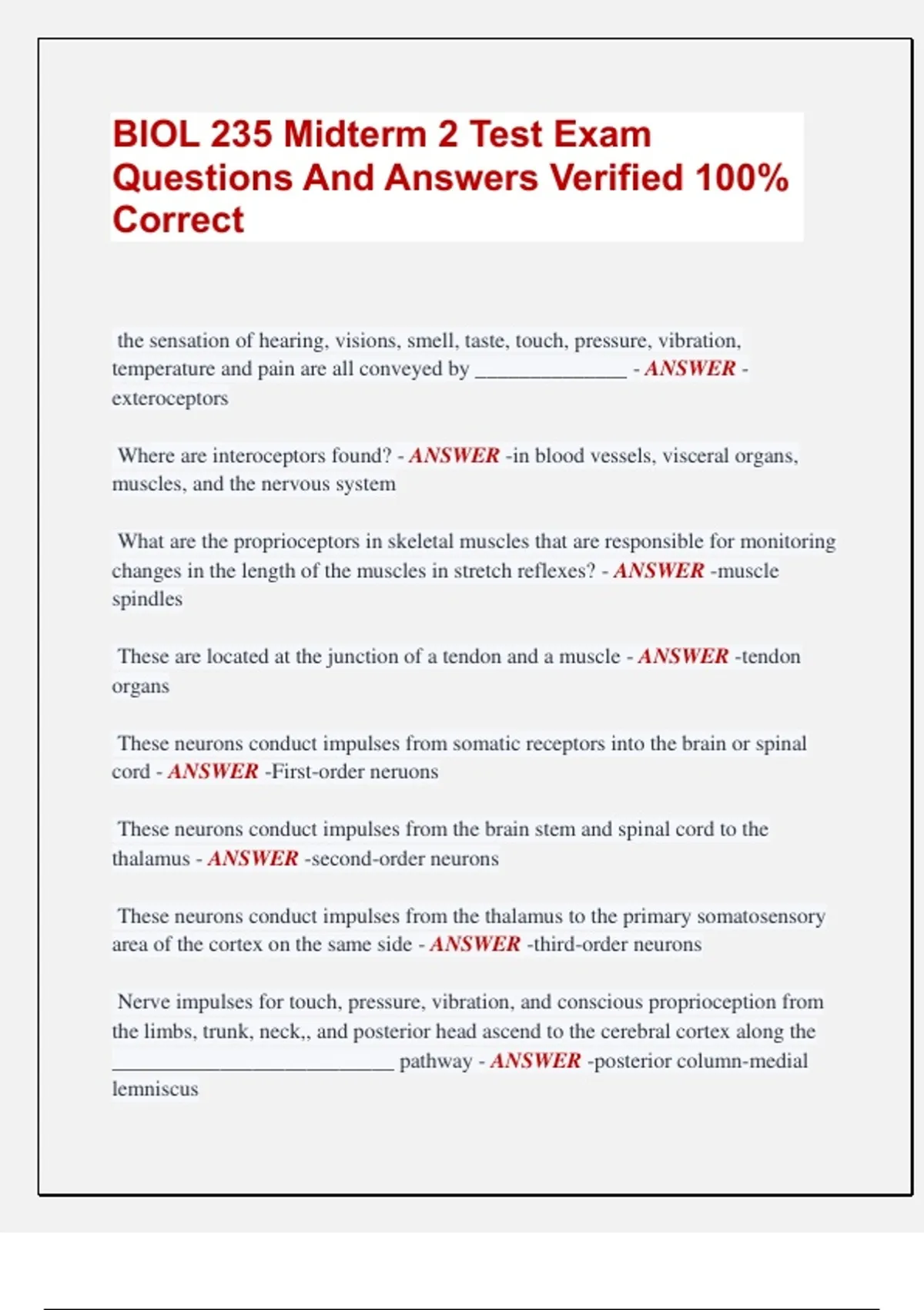 Where are interoceptors found? - ANSWER -in blood vessels, visceral organs,