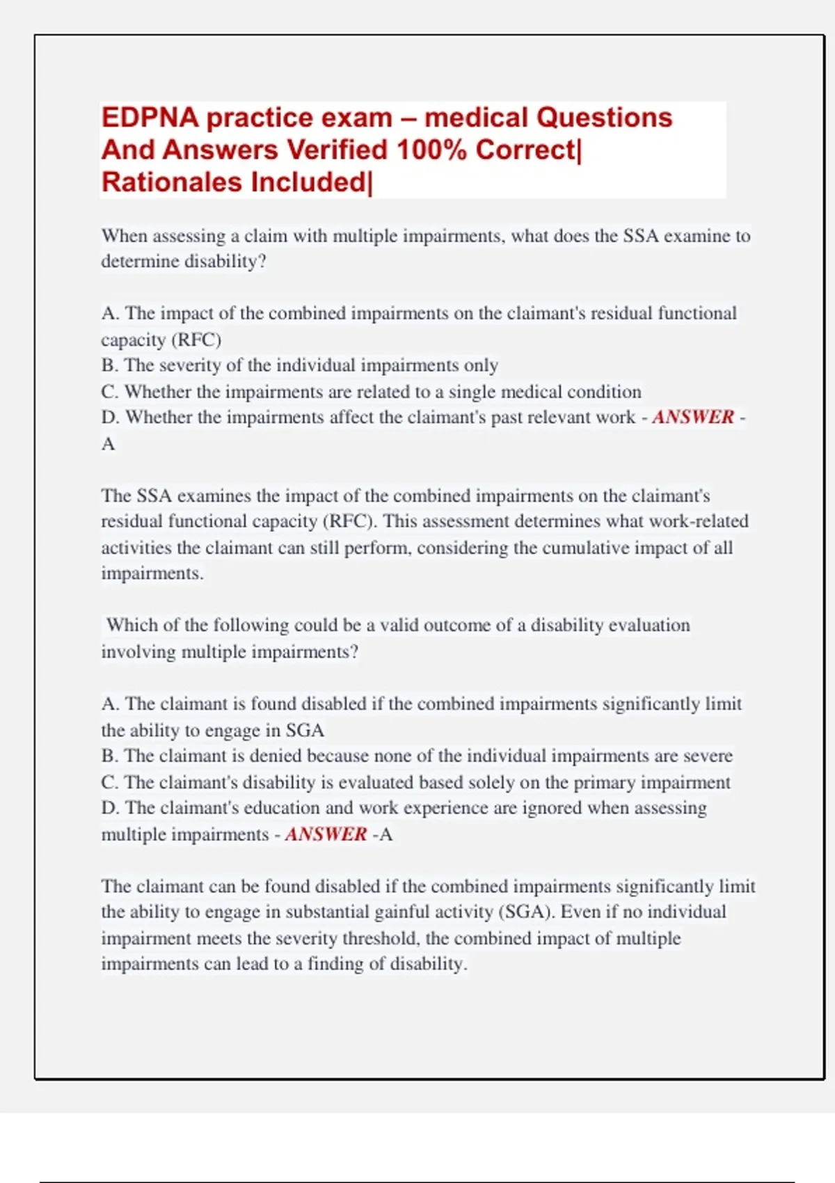multiple impairments - ANSWER -A