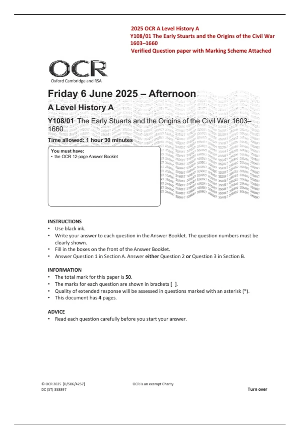 • the OCR 12‑page Answer Booklet