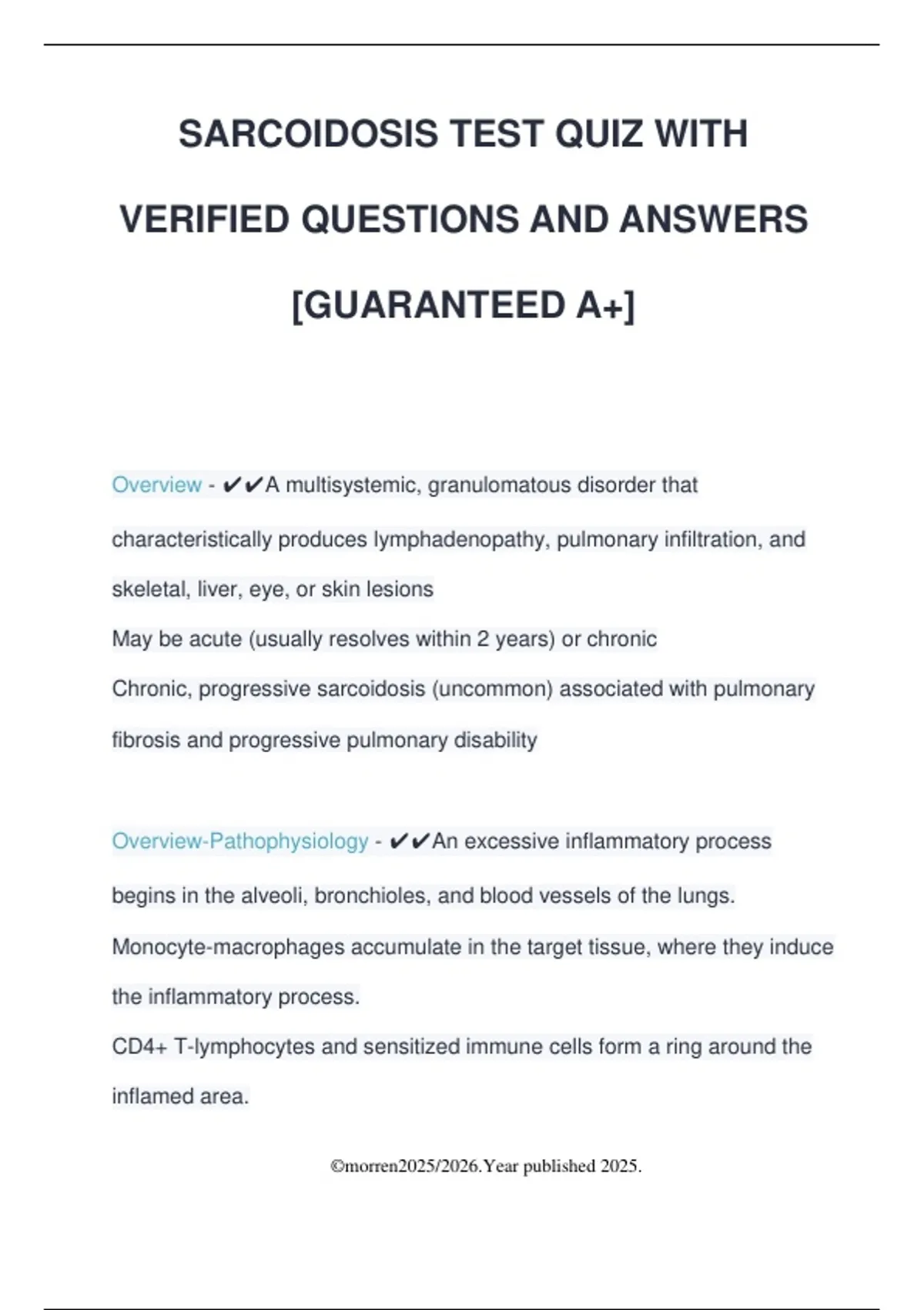 Overview - ✔✔A multisystemic, granulomatous disorder that