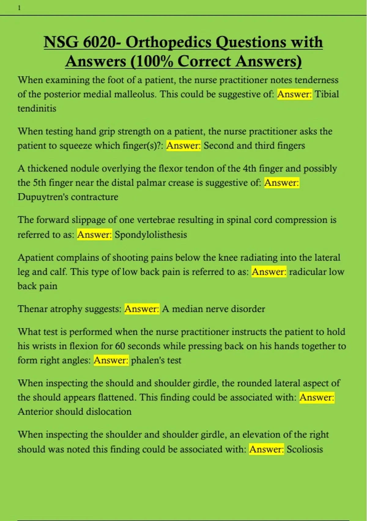 NSG 6020- Orthopedics Questions with