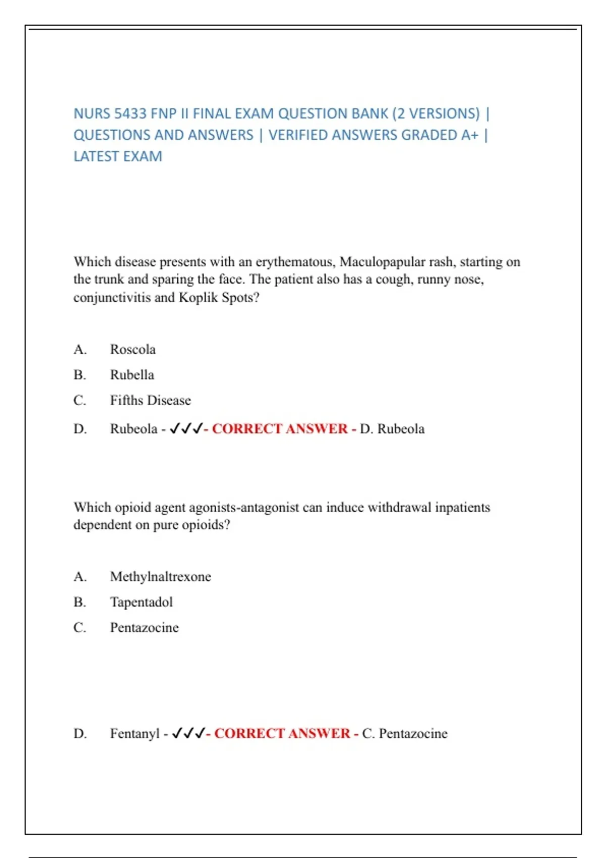 D. Rubeola - ✔✔✔- CORRECT ANSWER - D. Rubeola