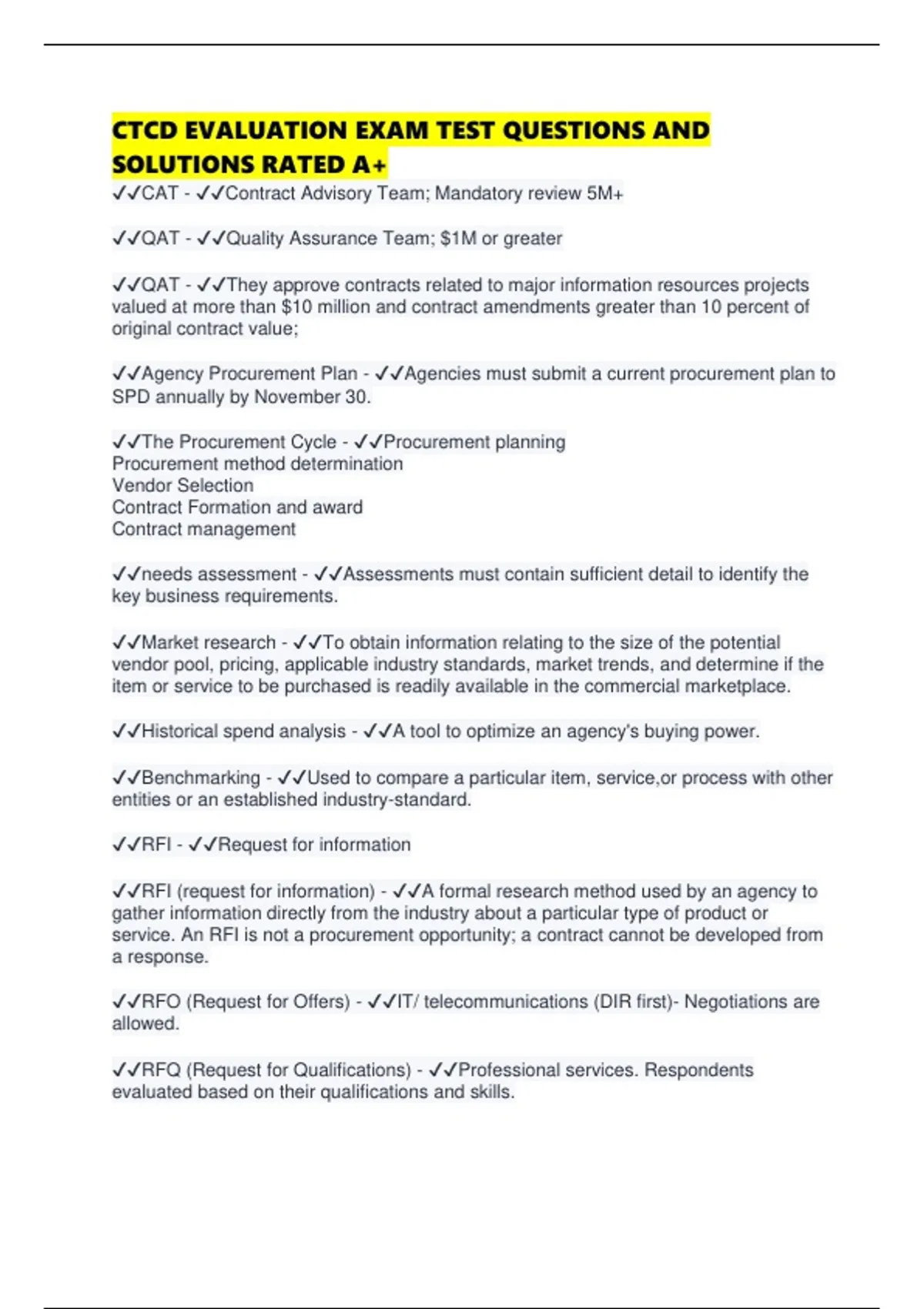 CTCD EVALUATION EXAM TEST QUESTIONS AND SOLUTIONS RATED A+