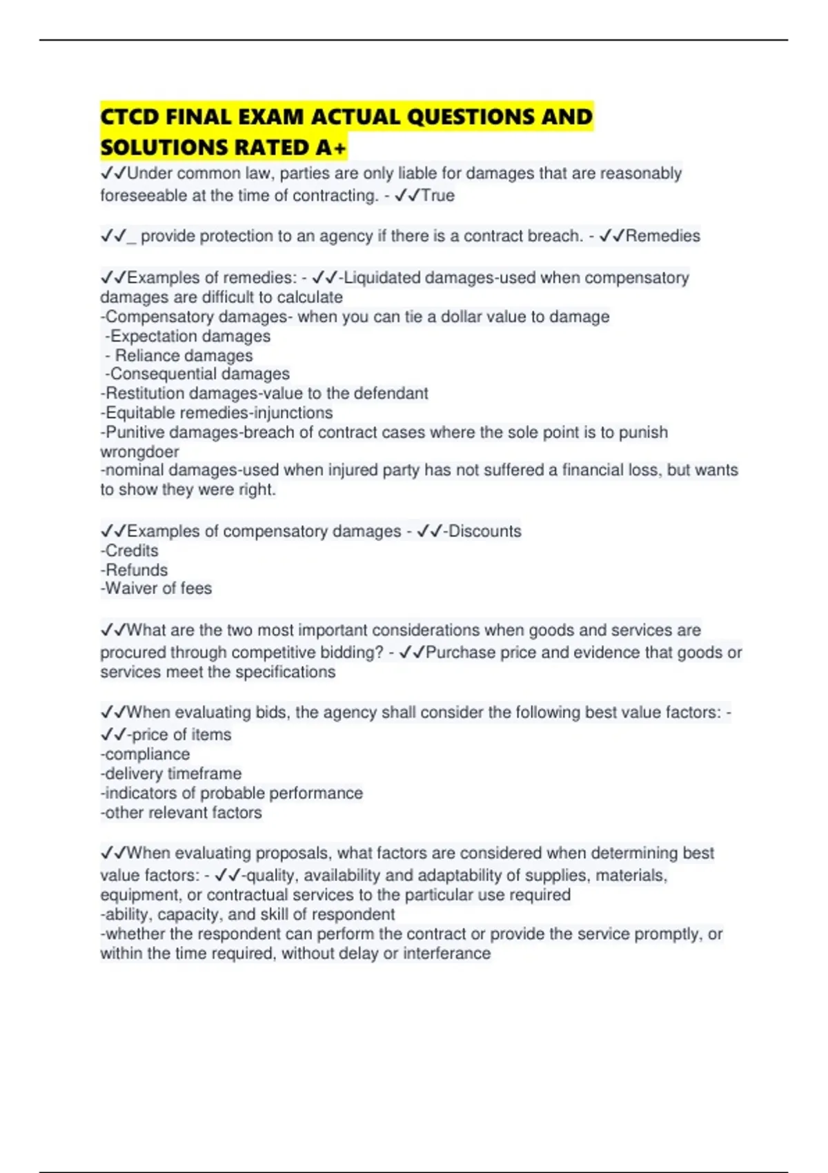 ✔✔Examples of remedies: - ✔✔-Liquidated damages-used when compensatory