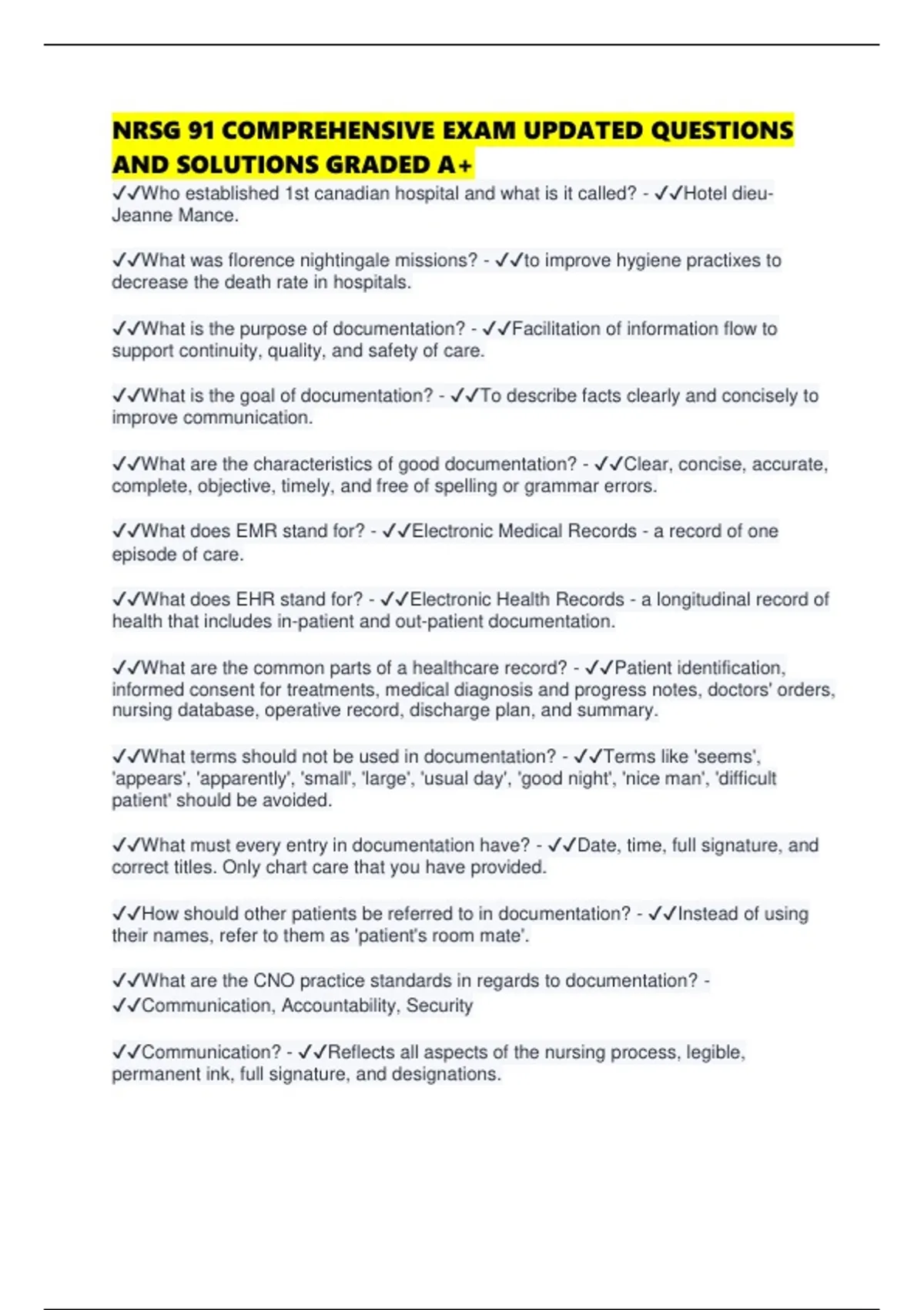 ✔✔Communication? - ✔✔Reflects all aspects of the nursing process, legible,