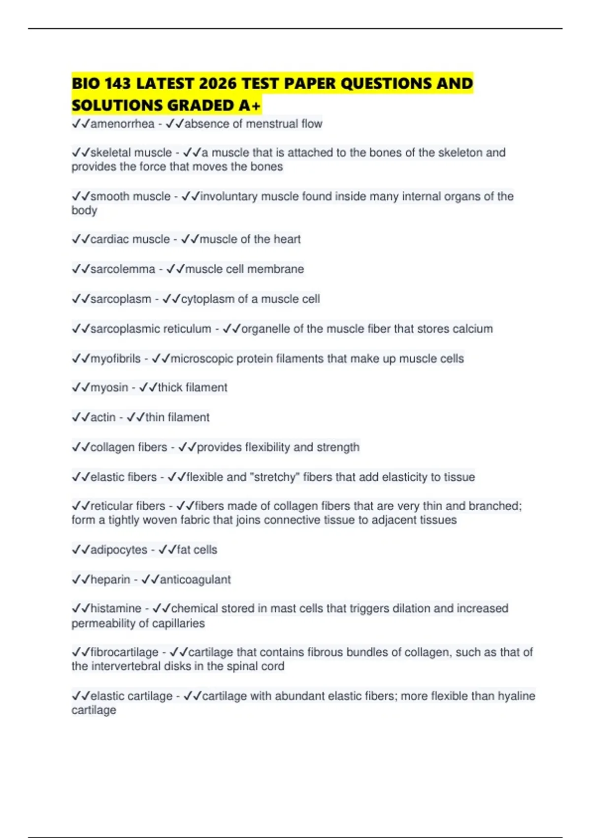 BIO 143 LATEST 2026 TEST PAPER QUESTIONS AND SOLUTIONS GRADED A+