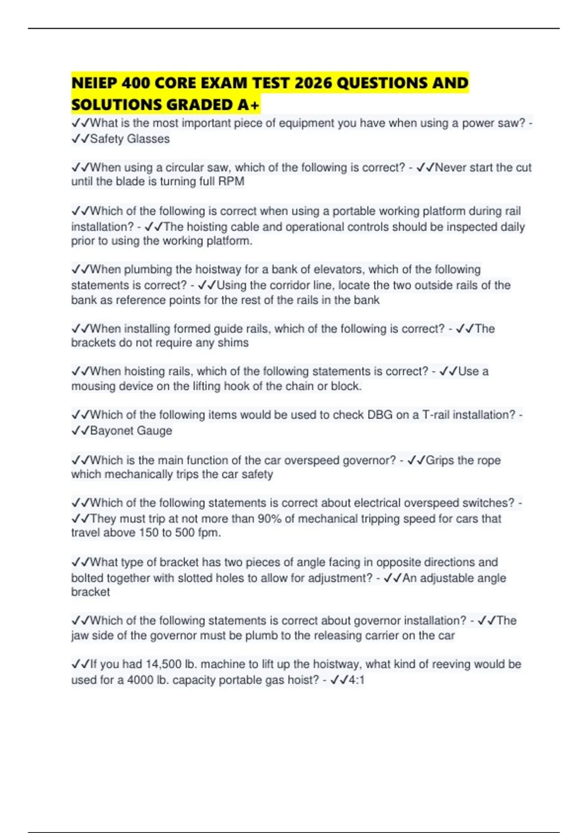 ✔✔Which is the main function of the car overspeed governor? - ✔✔Grips the rope