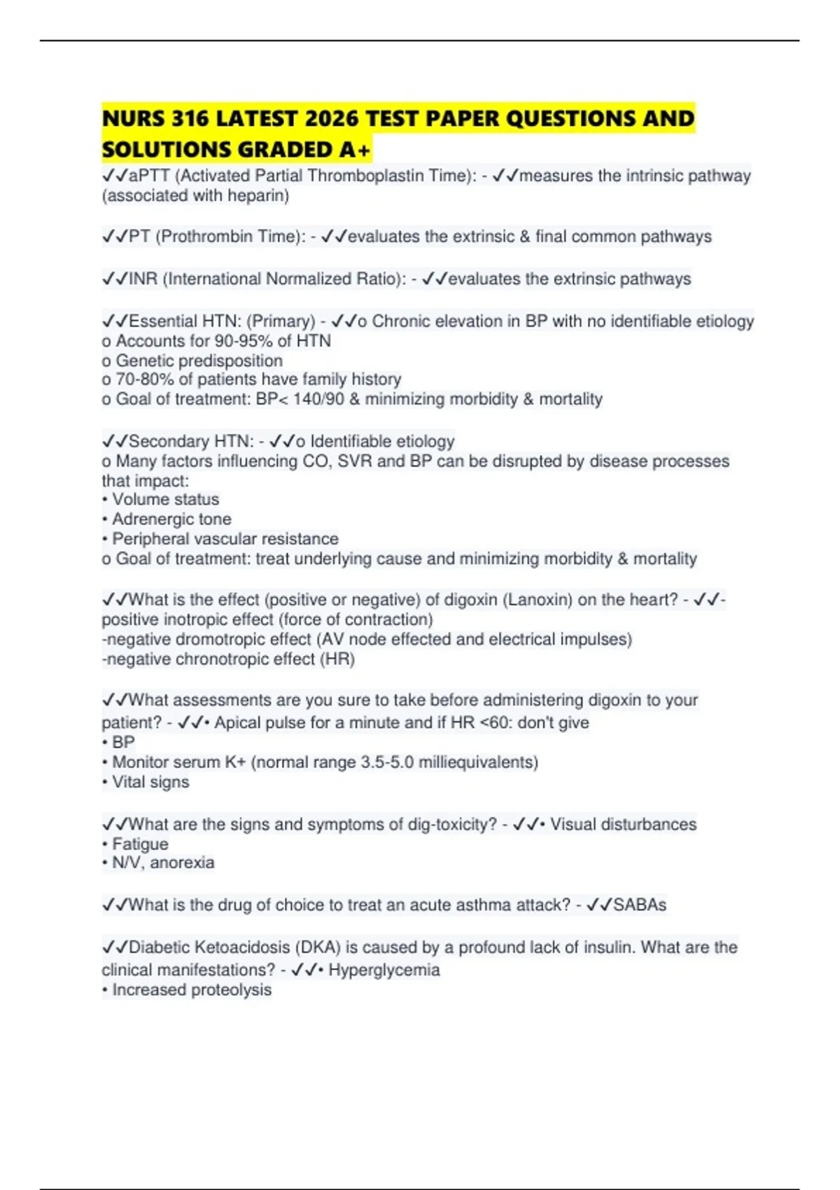 NURS 316 LATEST 2026 TEST PAPER QUESTIONS AND SOLUTIONS GRADED A+