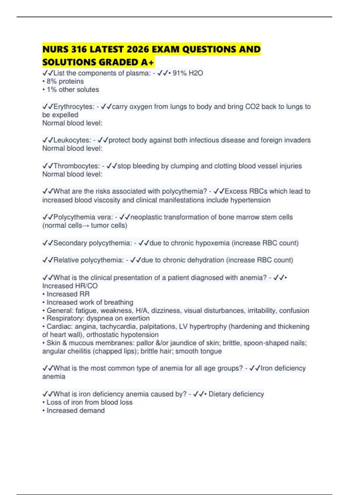 NURS 316 LATEST 2026 EXAM QUESTIONS AND SOLUTIONS GRADED A+