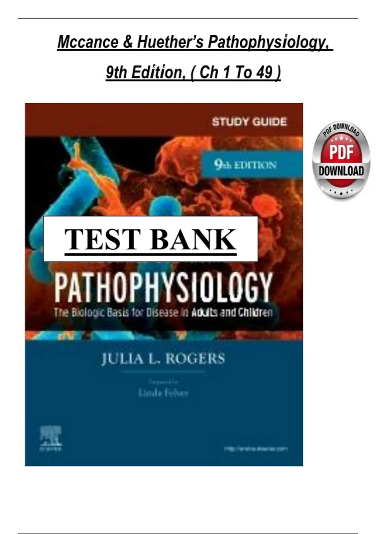 Full Test Bank for McCance & Huether’s Pathophysiology: The Biologic Basis for Disease in Adults and Children, 9th Edition by Julia L. Rogers and Landa Felver | Complete Chapter-by-Chapter Coverage (Ch 1-49) | Verified Questions & Correct Answers | Detail