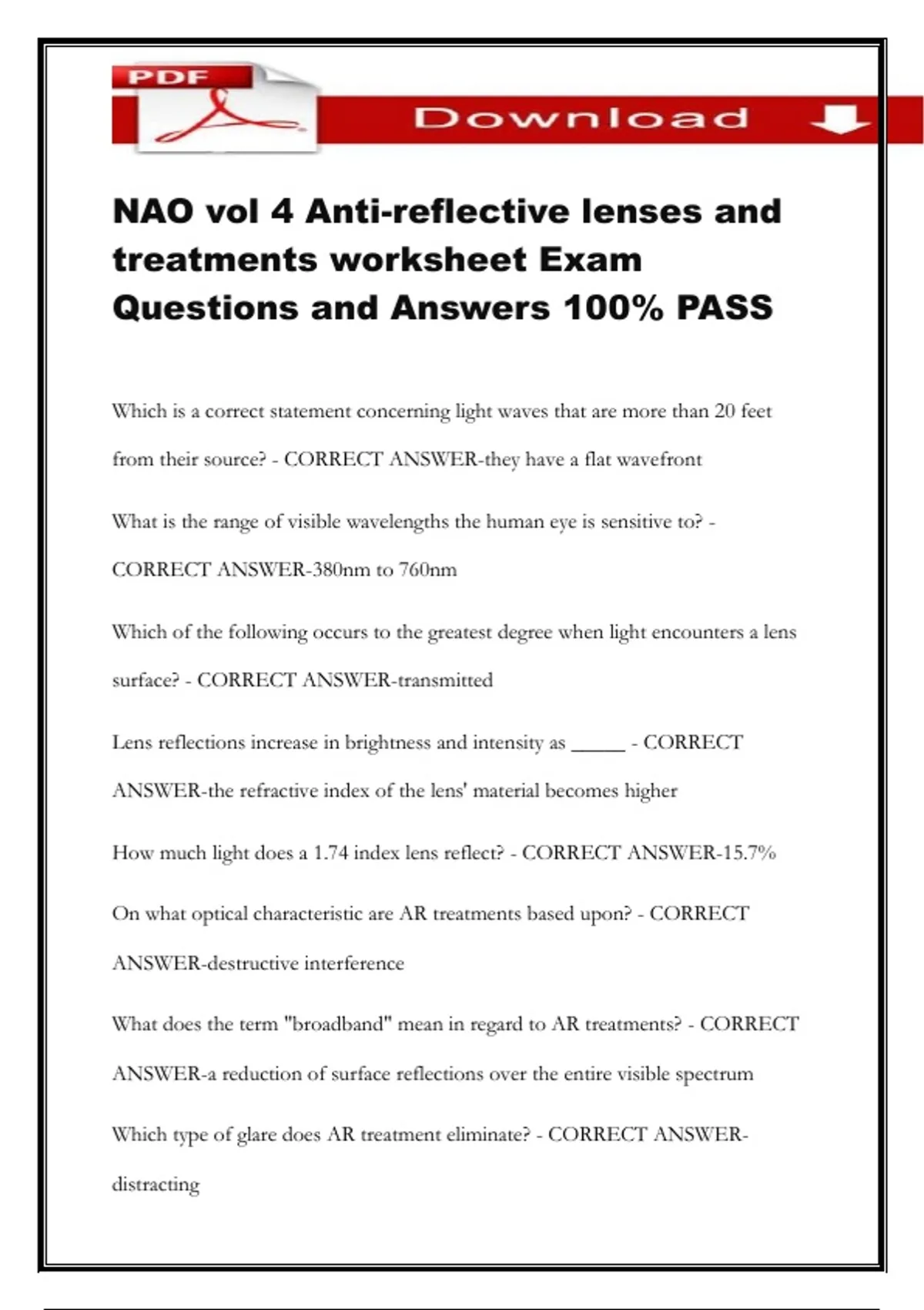 Which type of glare does AR treatment eliminate? - CORRECT ANSWER-