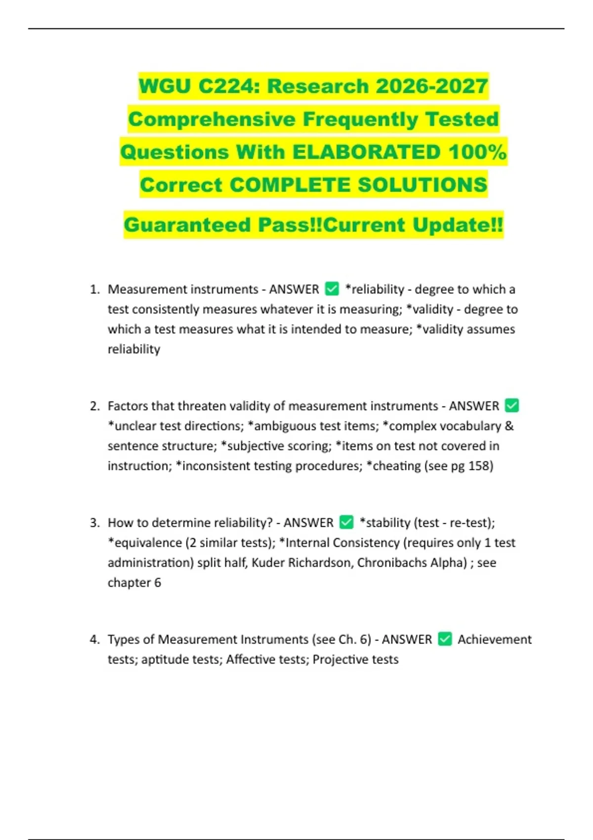 4. Types of Measurement Instruments (see Ch. 6) - ANSWER Achievement