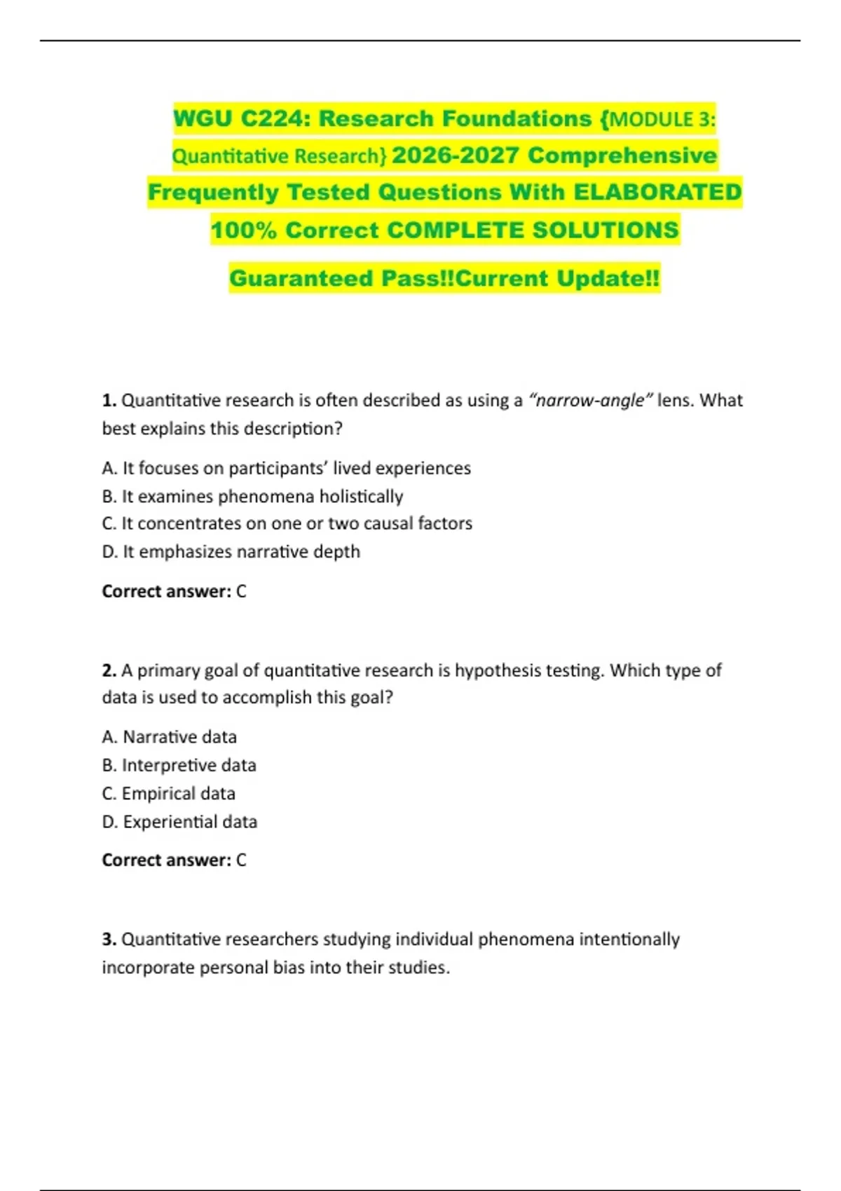 1. Quantitative research is often described as using a “narrow-angle” lens. What