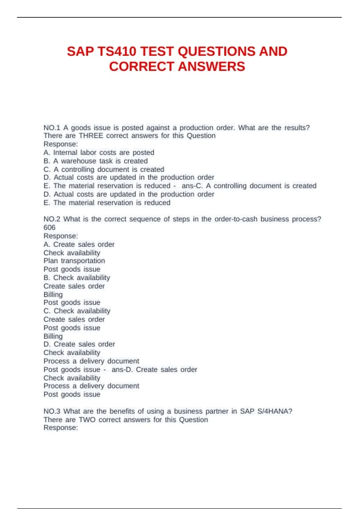 SAP TS410 TEST QUESTIONS AND CORRECT ANSWERS