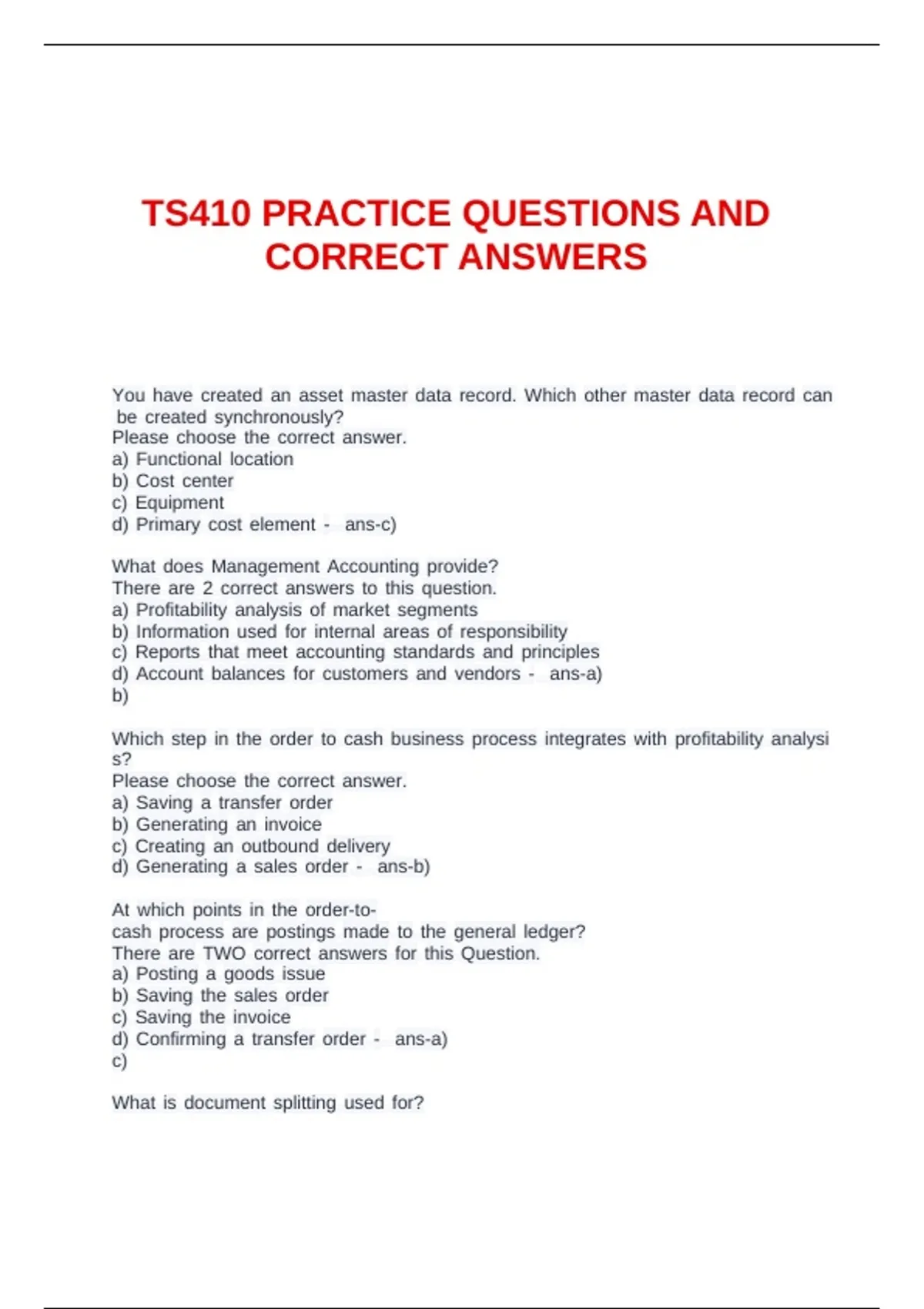 TS410 PRACTICE QUESTIONS AND CORRECT ANSWERS