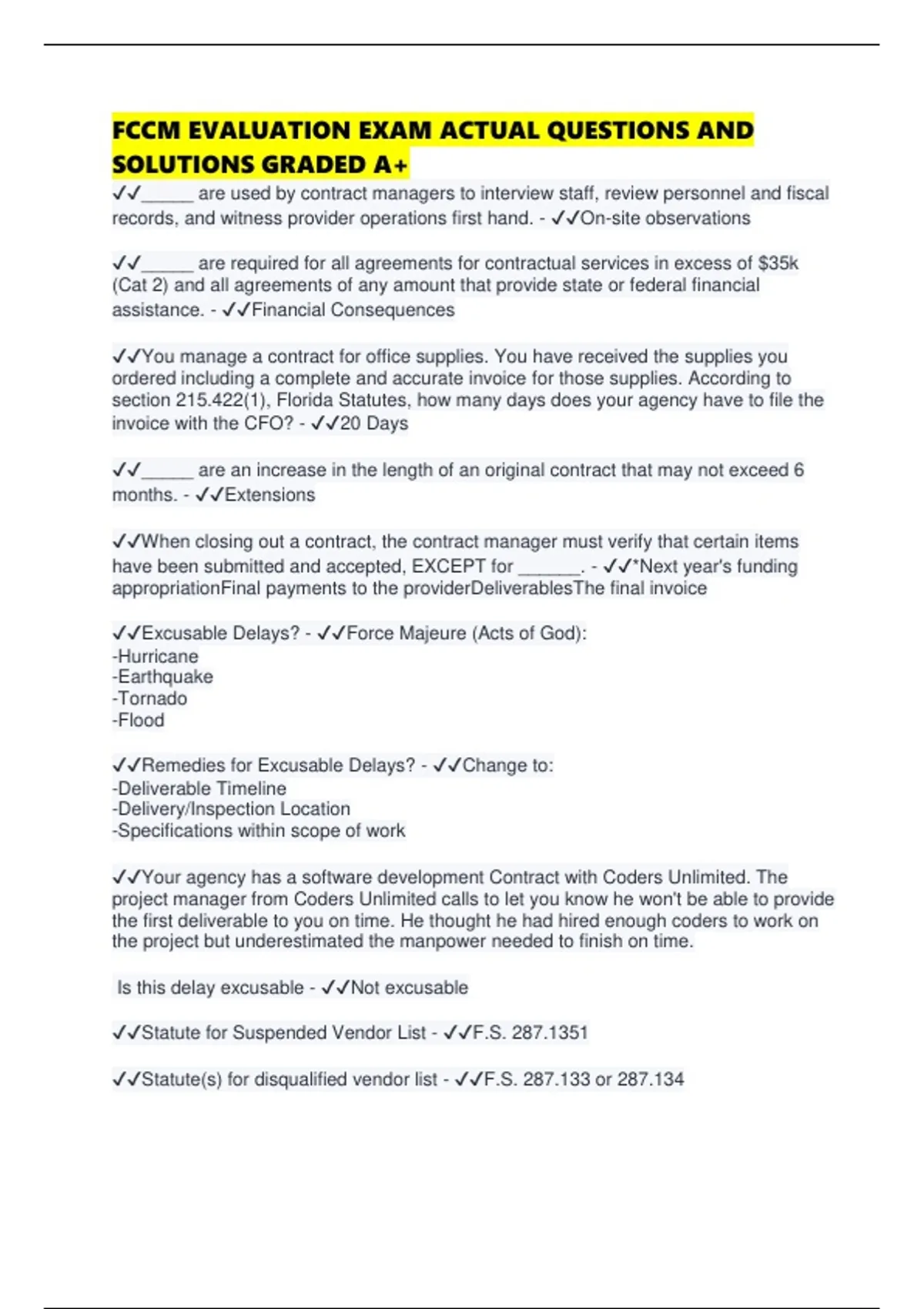 FCCM EVALUATION EXAM ACTUAL QUESTIONS AND
