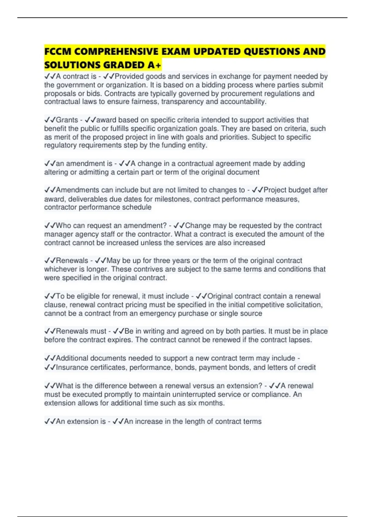 ✔✔Additional documents needed to support a new contract term may include -