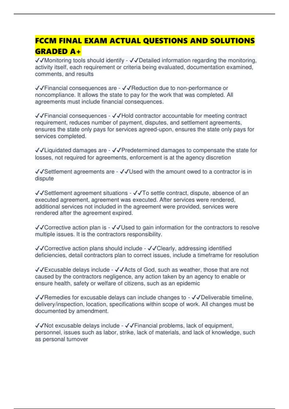 FCCM FINAL EXAM ACTUAL QUESTIONS AND SOLUTIONS GRADED A+
