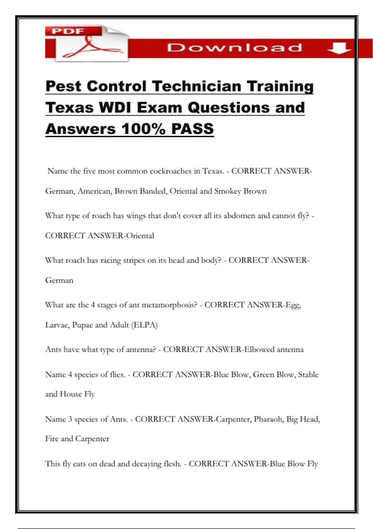 Texas WDI Exam Questions and