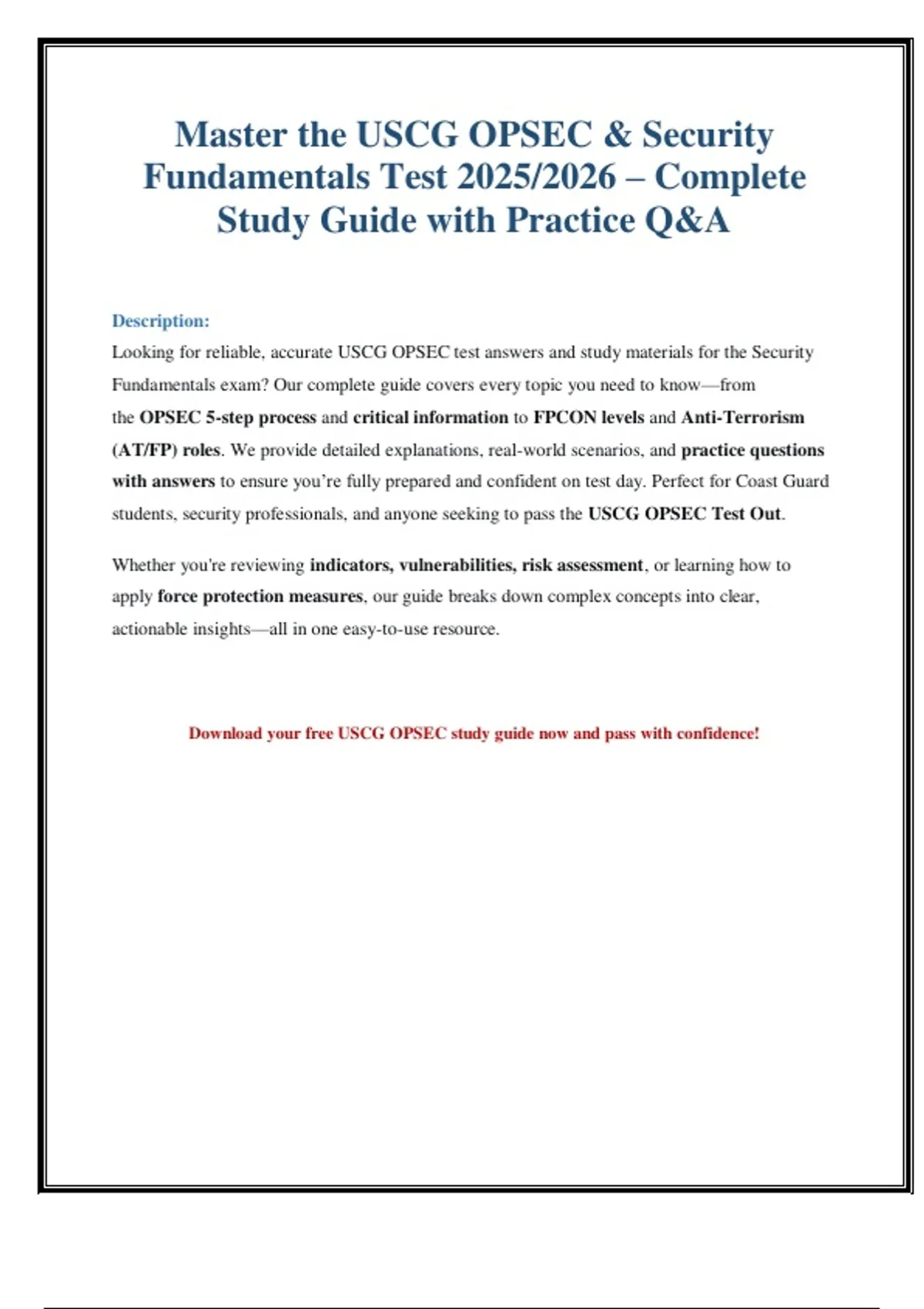 Download your free USCG OPSEC study guide now and pass with confidence!