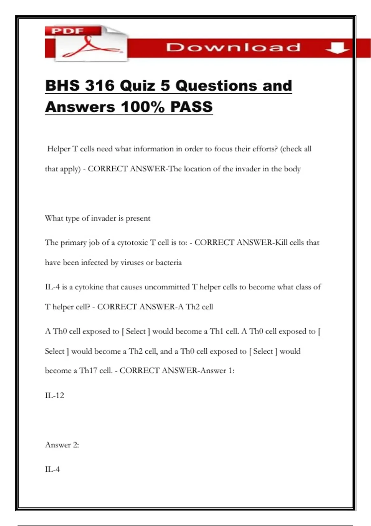 become a Th17 cell. - CORRECT ANSWER-Answer 1: