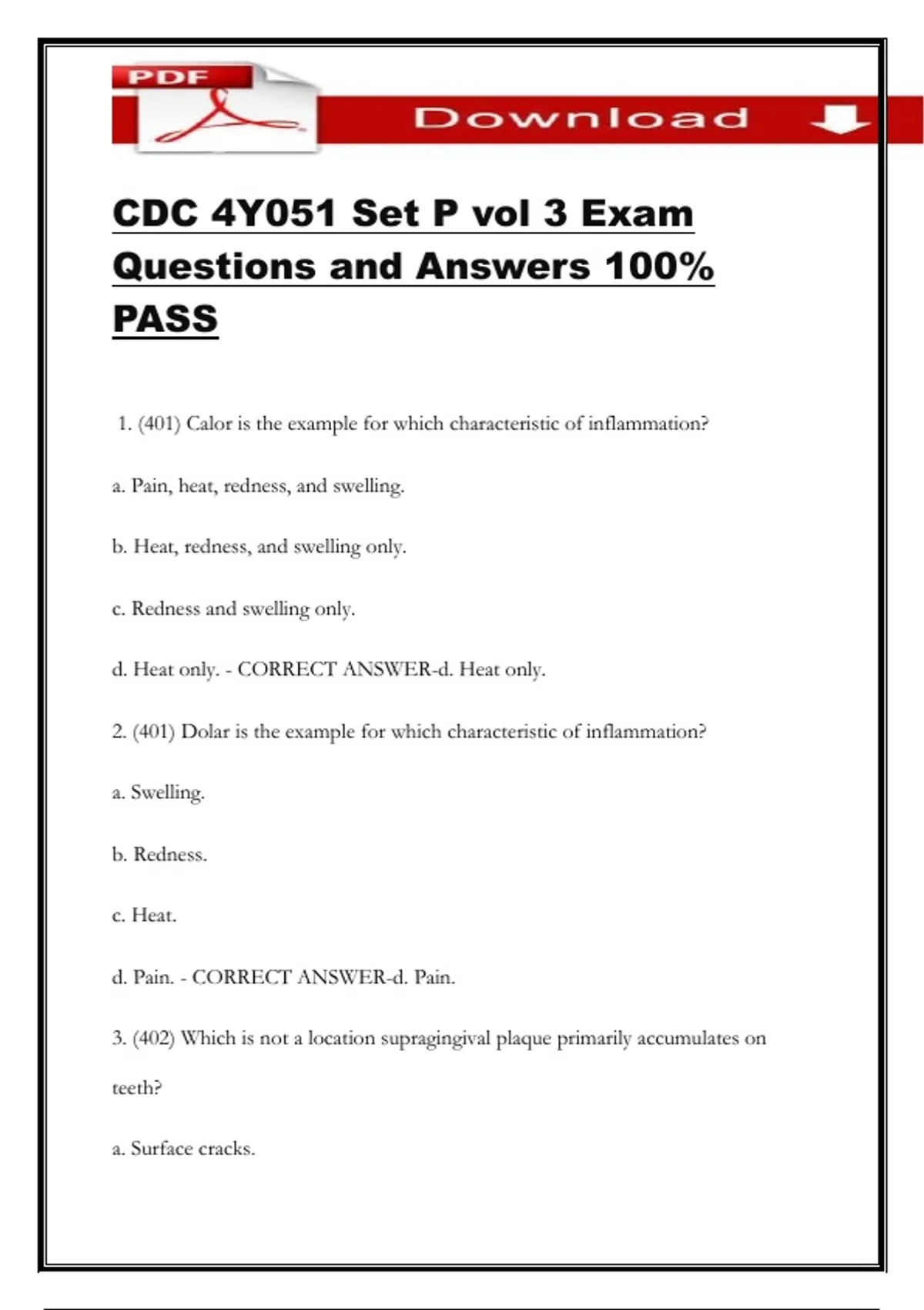 1. (401) Calor is the example for which characteristic of inflammation?